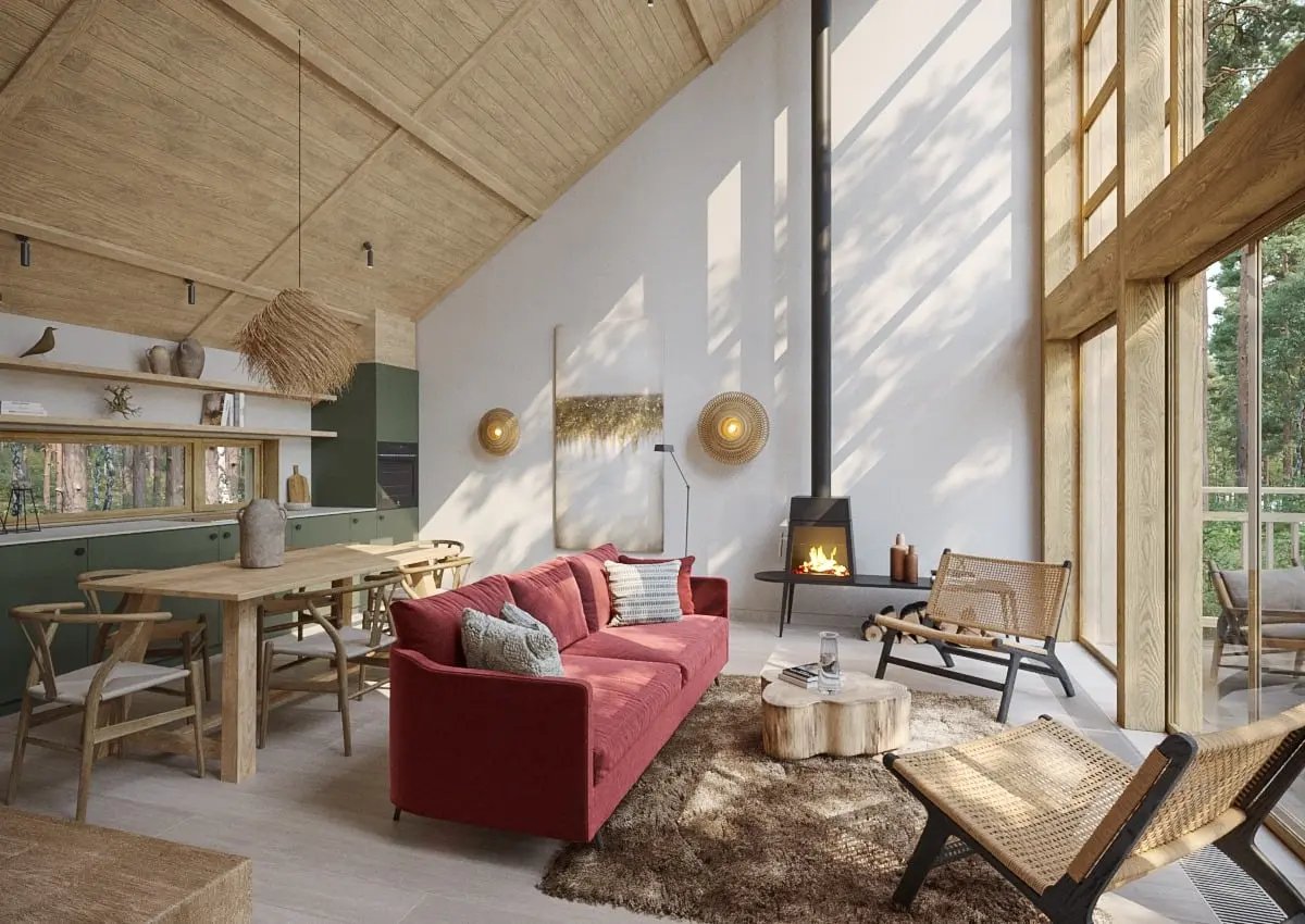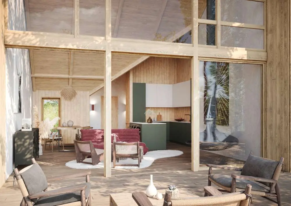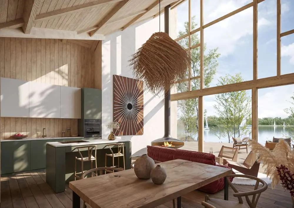 Patrząc na wizualizacje trwającej już budowy, widać, że projekt pracowni Boris Kudlička with Partners, to coś więcej niż idea własnego domu nad jeziorem. To prawdziwy styl życia z bliskimi i przyjaciółmi, z którymi dzień zaczyna się na plaży, wyprawie rowerowej i siłowni, a kończy kolacją z tańcami o zachodzie słońca. Drewniana architektura domów z ogromnymi przeszkleniami emanuje ciepłem, połączonym ze starannie dopracowanymi współczesnymi liniami i wysokiej klasy wykończeniami. Każdy z domów można dodatkowo spersonalizować, wybierając wariant aranżacji wnętrz i wersję z sauną, kominkiem, jacuzzi, żaluzjami zewnętrznymi lub markizami. Mieszkańcy inwestycji Tu Las Tam Woda będą mogli już wkrótce podziwiać wspaniałe panoramiczne widoki na las i jezioro, rozciągające się zarówno z domów, jak i strefy wspólnej.