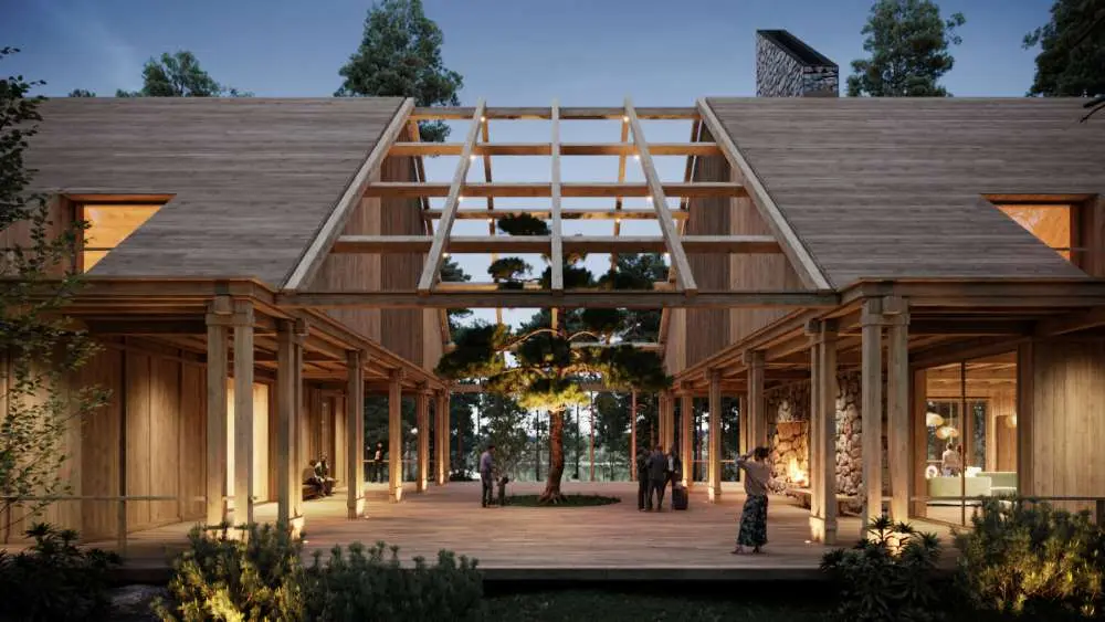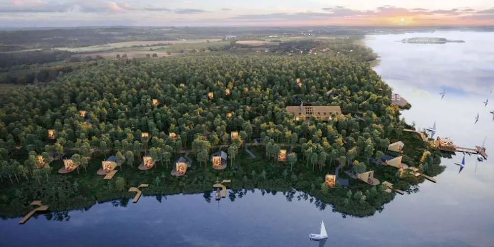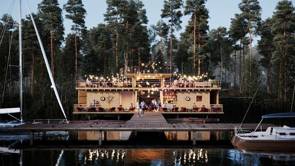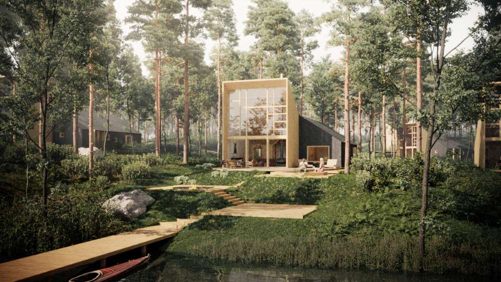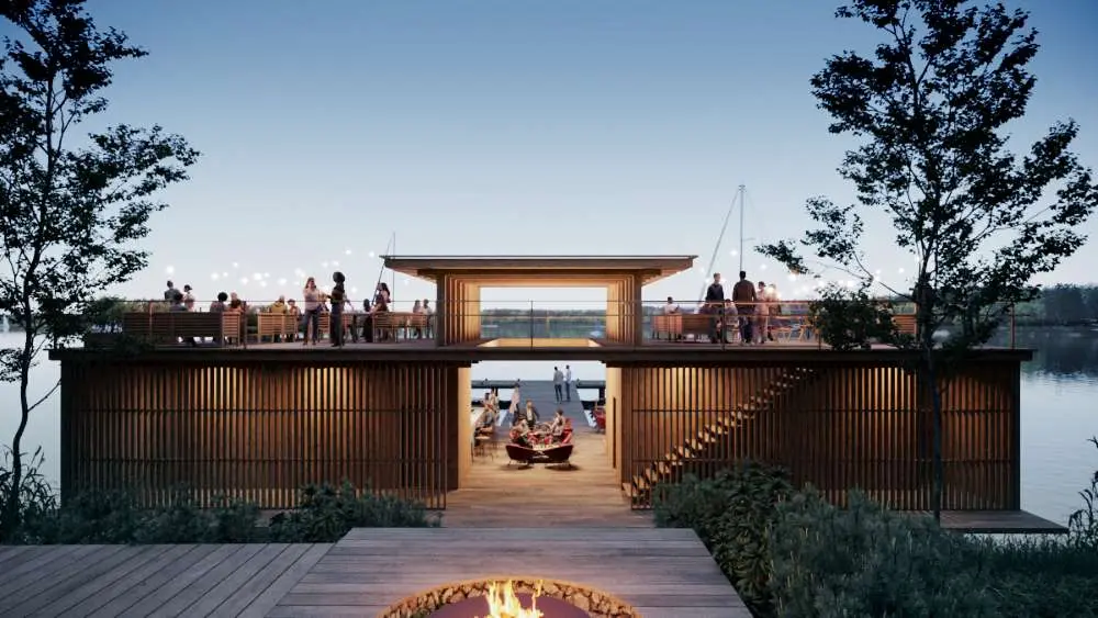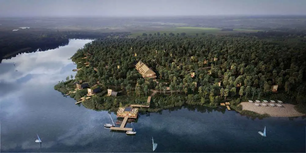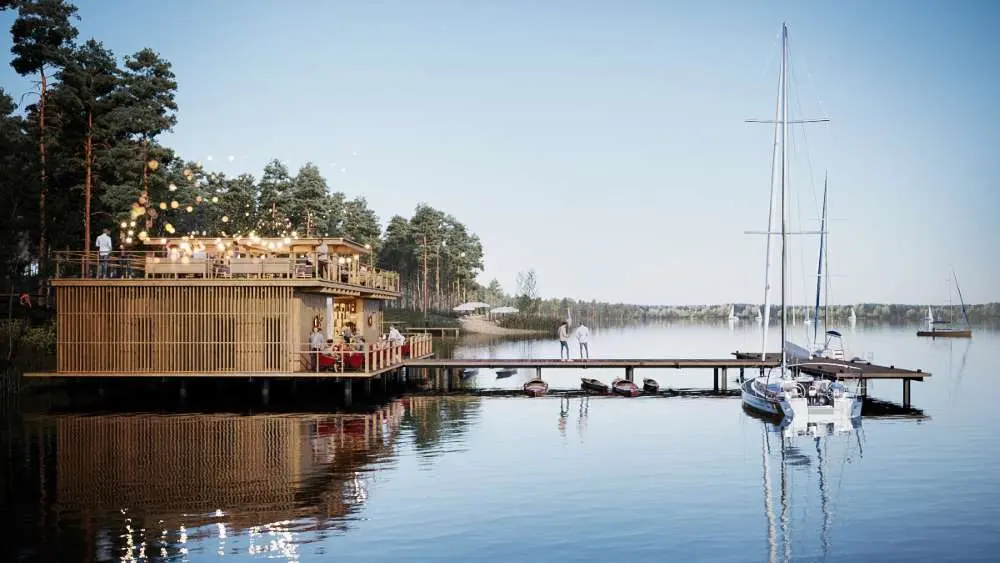 Przyjeżdżając po raz pierwszy na teren budowy domów, zaprojektowanych przez zespół architektów Boris Kudlička with Partners, czuje się, że pobyt w tym miejscu może być wyjątkowy, a przygoda i relaks w duchu slow life zaczyna się właśnie tu i teraz. Każdy szczegół tutejszej infrastruktury, obejmującej poza domami (w pierwszym etapie powstanie ich 36 , w drugim 14) własny port z możliwością cumowania łódek, recepcję, plażę, SPA, amfiteatr, kino plenerowe, szklarnie, siłownię, salę konferencyjną, podgrzewany basen zewnętrzny czy stację do ładowania e-samochodów, oferuje wyjątkowe udogodnienia i usługi, pasujące do statusu tego miejsca, znajdującego się zaledwie dwie godziny drogi od Warszawy i Gdańska.