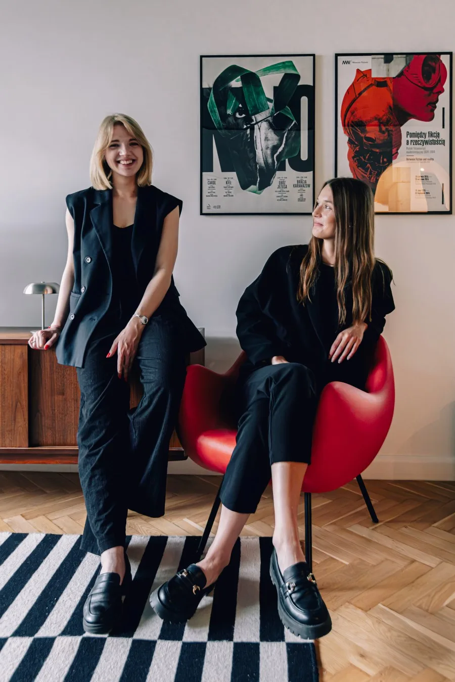 Zestawienie mebli vintage z grafikami współczesnych polskich artystów, takich jak Krzysztof Iwański, buduje narrację, która pozostaje wierna duchowi epoki, a jednocześnie funkcjonuje całkowicie współcześnie.