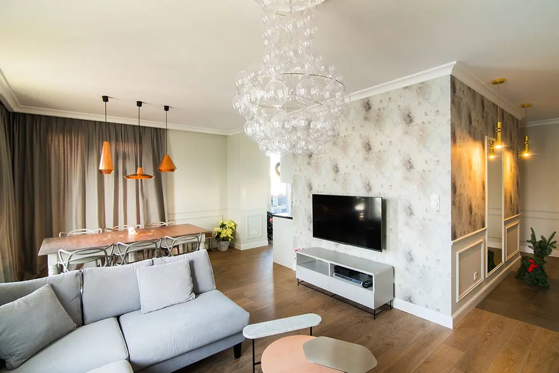 80 – metrowe mieszkanie znajdujące się na warszawskim Wilanowie oddano w ręce biura architektonicznego Eg Projekt. Indywidualny styl pracowni w połączeniu z jasno sprecyzowanymi potrzebami właścicieli mieszkania, przełożył się na stworzenie bardzo stylowego i eleganckiego domu.