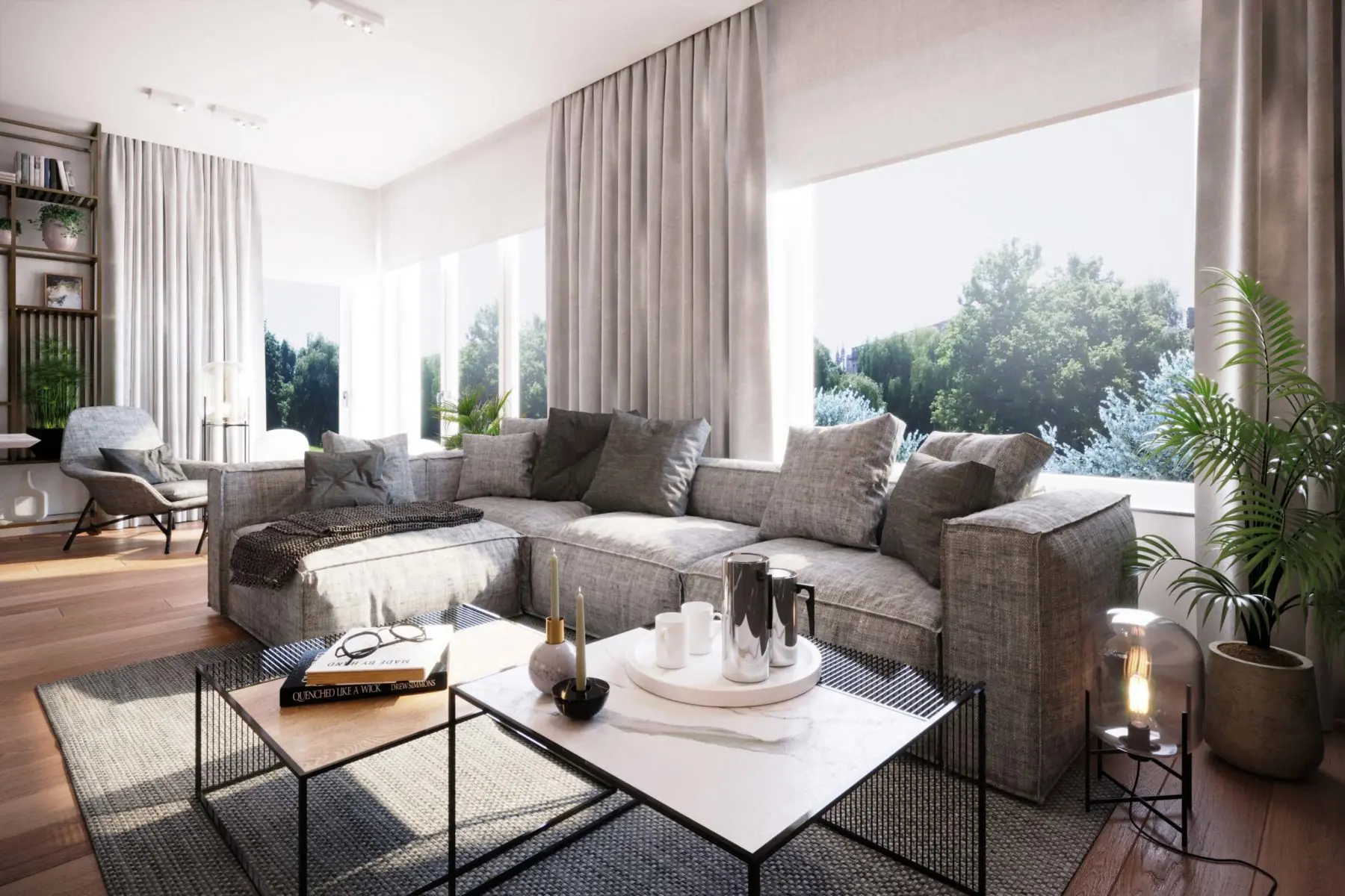 Inwestycja zlokalizowana w przepięknym miejscu na skraju Puszczy Kampinoskiej. Wyjątkowe okoliczności przyrody sprawiają, iż jest to istny azyl i w takim samym duchu zostało zaprojektowane wnętrze willi. Projekt powstał na zlecenie dewelopera, w oparciu o dane na temat grupy dcelowej. Projekt idealnie dopracowany do wymagań.