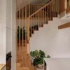 Jednym z największych wyzwań projektowych były dębowe schody prowadzące na antresolę, pod którymi zaplanowano garderobę. Autorski projekt architektki oraz powierzenie realizacji zaufanej firmie, która kompleksowo zajęła się dostosowaniem konstrukcji do wnętrza i jej wykonaniem, przełożyły się na spójny efekt estetyczny i wysoką jakość detalu.