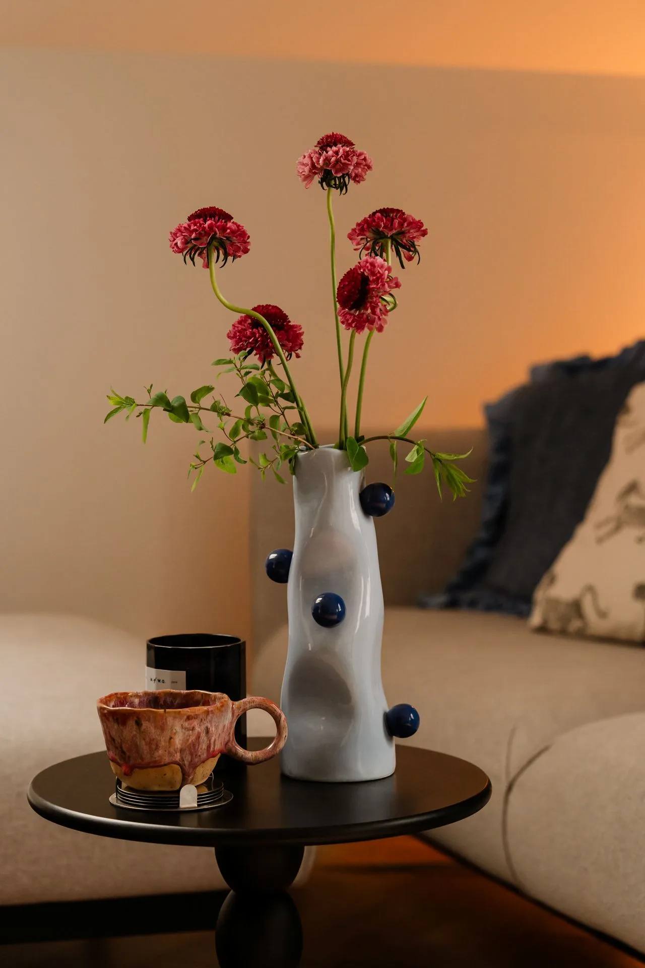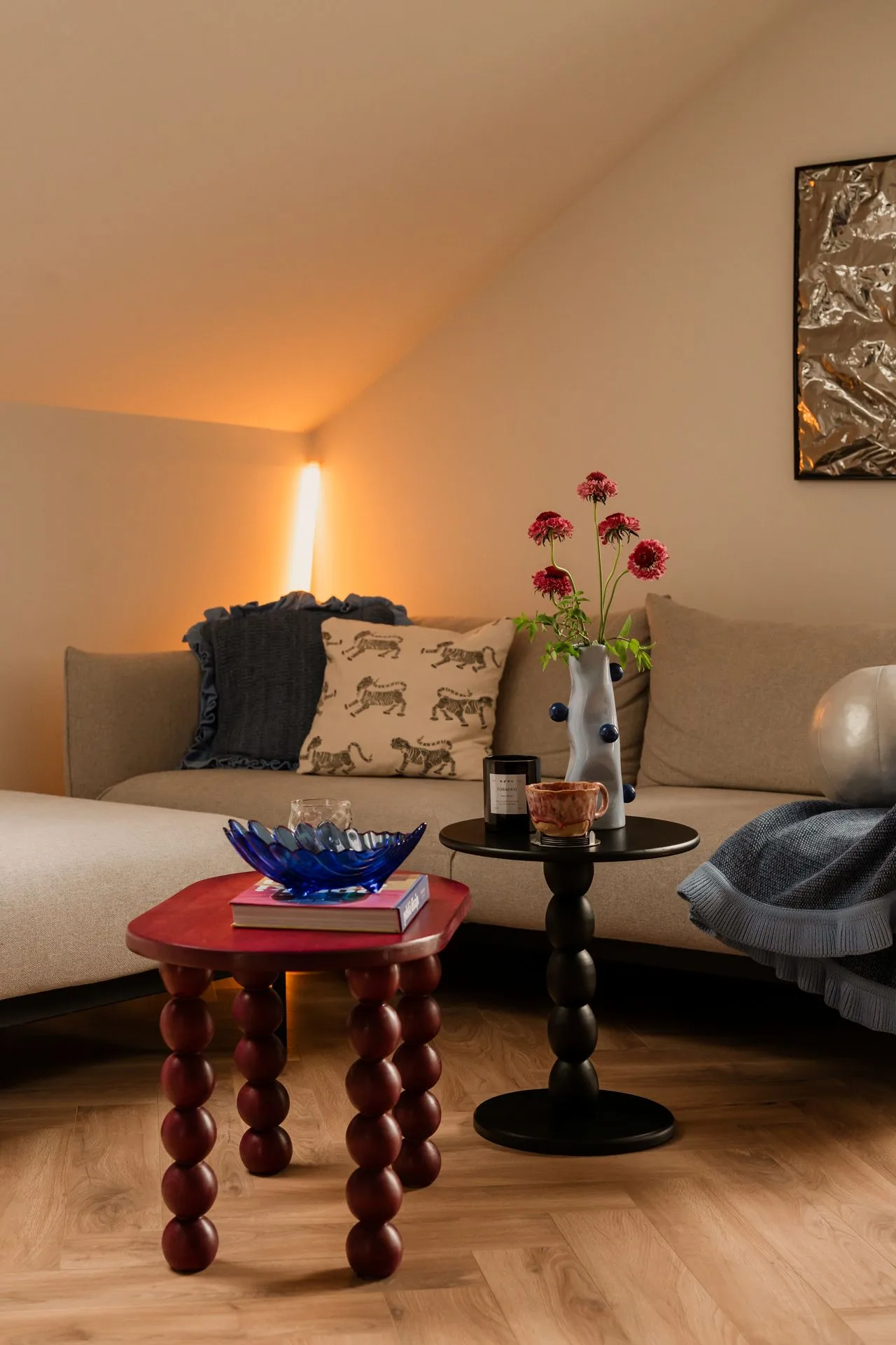 Obok współczesnych mebli i sztuki użytkowej pojawiają się przedmioty vintage, kolekcjonowane przez lata pamiątki i rzeczy z duszą. To przestrzeń, która żyje razem z właścicielką i codziennie przypomina o tym, kim jest i co kocha.