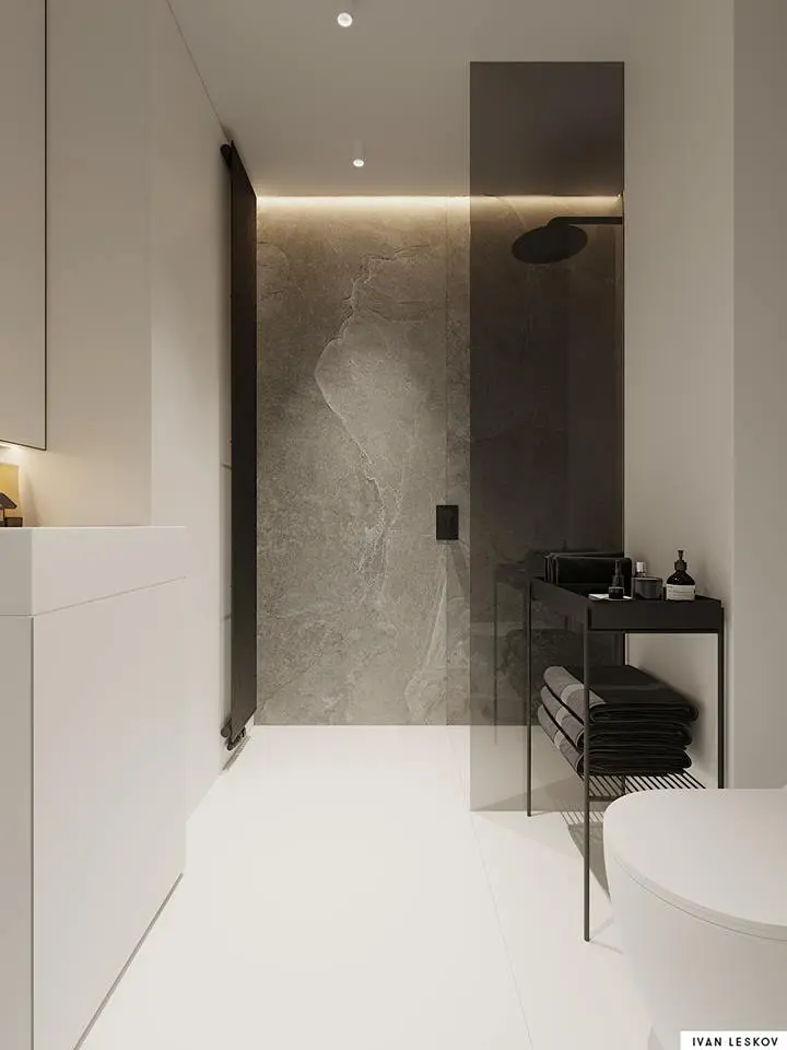 Słowa Leonarda da Vinci idealnie ukazują piękno tego wnętrza. Prosta forma, minimum dodatków, barw. Głównymi kolorami są biel, szarość i czerń. Minimalistyczne aranżacje wnętrz doskonale współgrają z nowoczesną architekturą. Elegancki minimalizm w mieszkaniu staje się miejscem, w którym będziemy mogli wypoczywać i rozkoszować się spokojem. Takie właśnie jest wnętrze zaprojektowane przez architekta Ivan leskov.