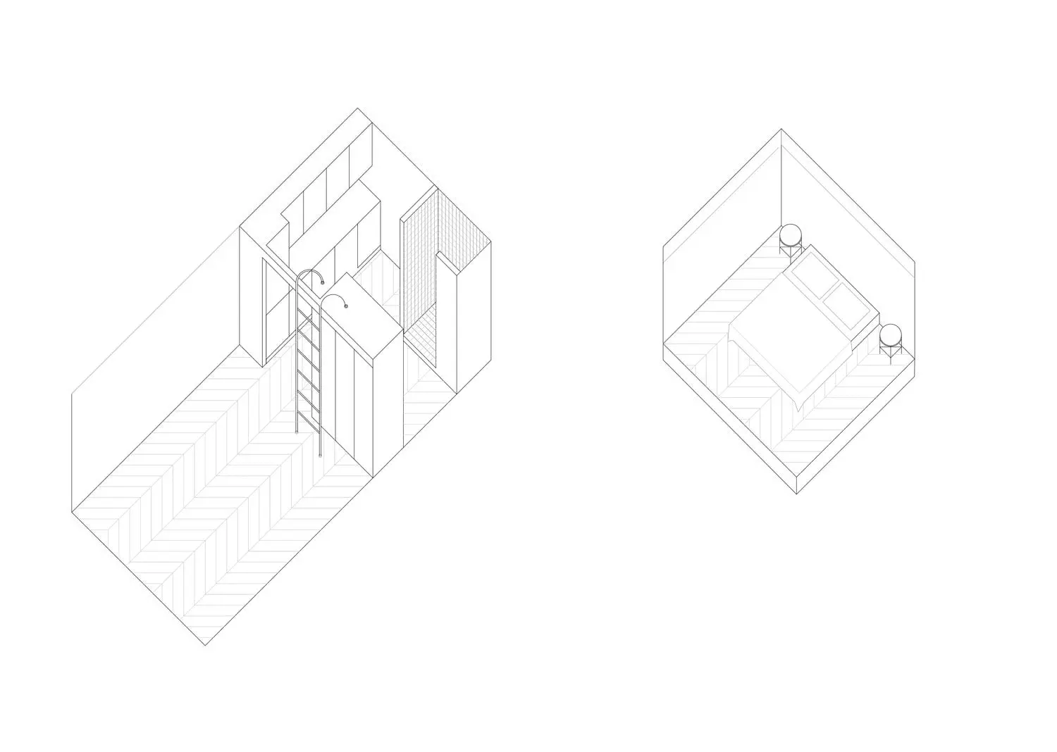 Małe mieszkania również mogą być niezwykle stylowe, a ten projekt jest tego doskonałym przykładem. Architektka postanowiła maksymalnie wykorzystać jego potencjał, który tkwił przede wszystkim w wysokości przestrzeni oraz lokalizacji kawalerki.