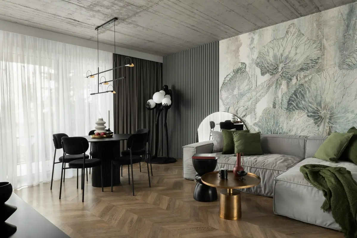 Czy da się połączyć style leżące na dwóch przeciwległych biegunach? Zimny loft zbrutalizowany do formy ,,nagiego” betonu i nowoczesna klasyka znalazły wspólną przestrzeń w mieszkaniu projektantki i jej partnera prowadzącego firmę wykończeniową Foremen. Tatsiana Siamashka (ART and DESIGN) zaprojektowała wnętrze będące wyrazem jej twórczej siły i potencjału. Udowodniła, że nawet skrajne nurty mogą razem tworzyć spójną oraz harmonijną całość.