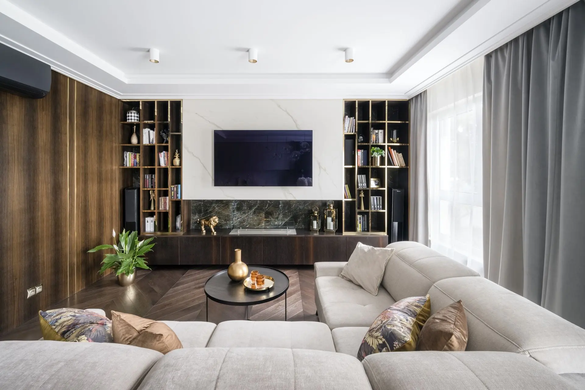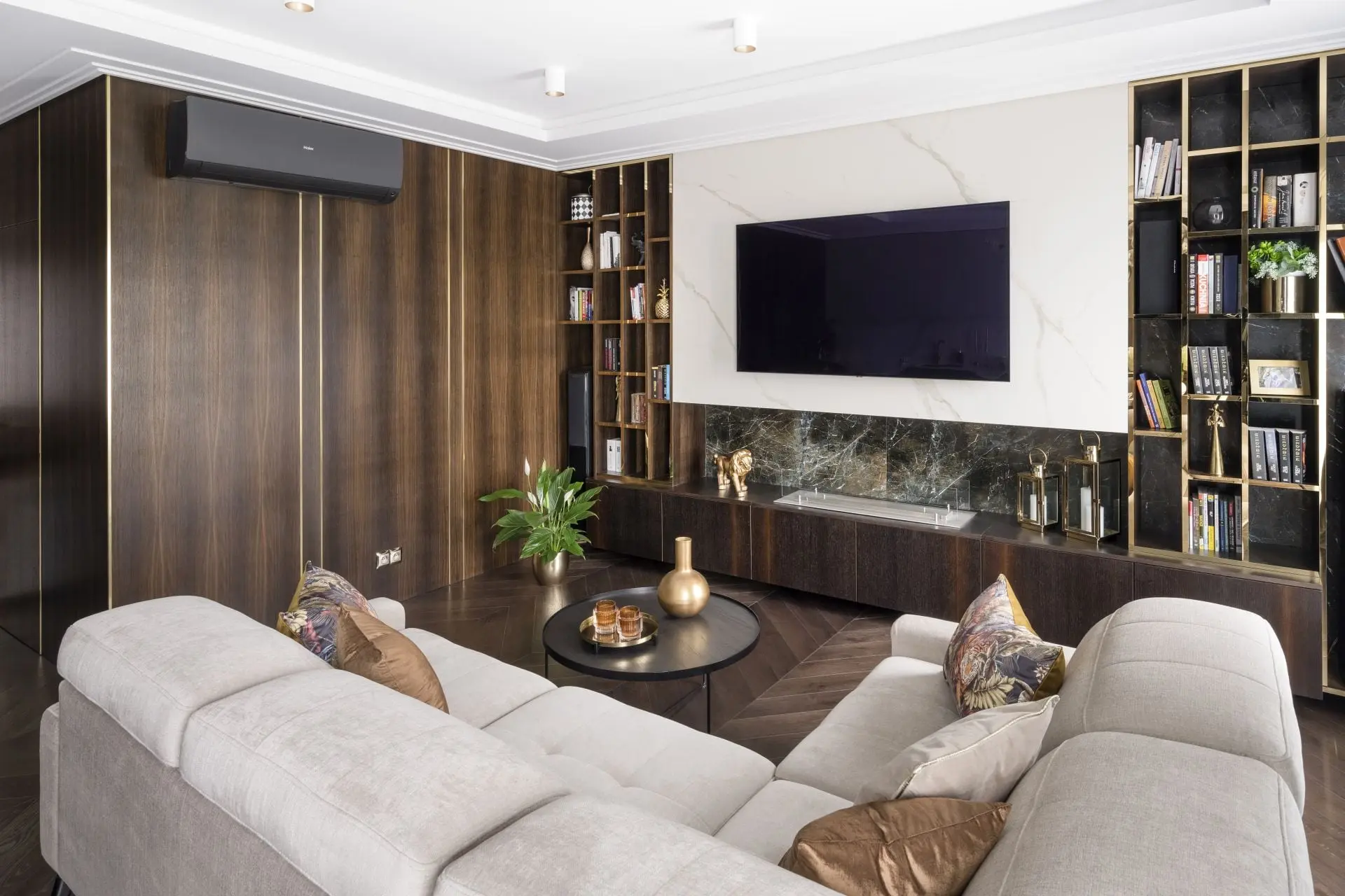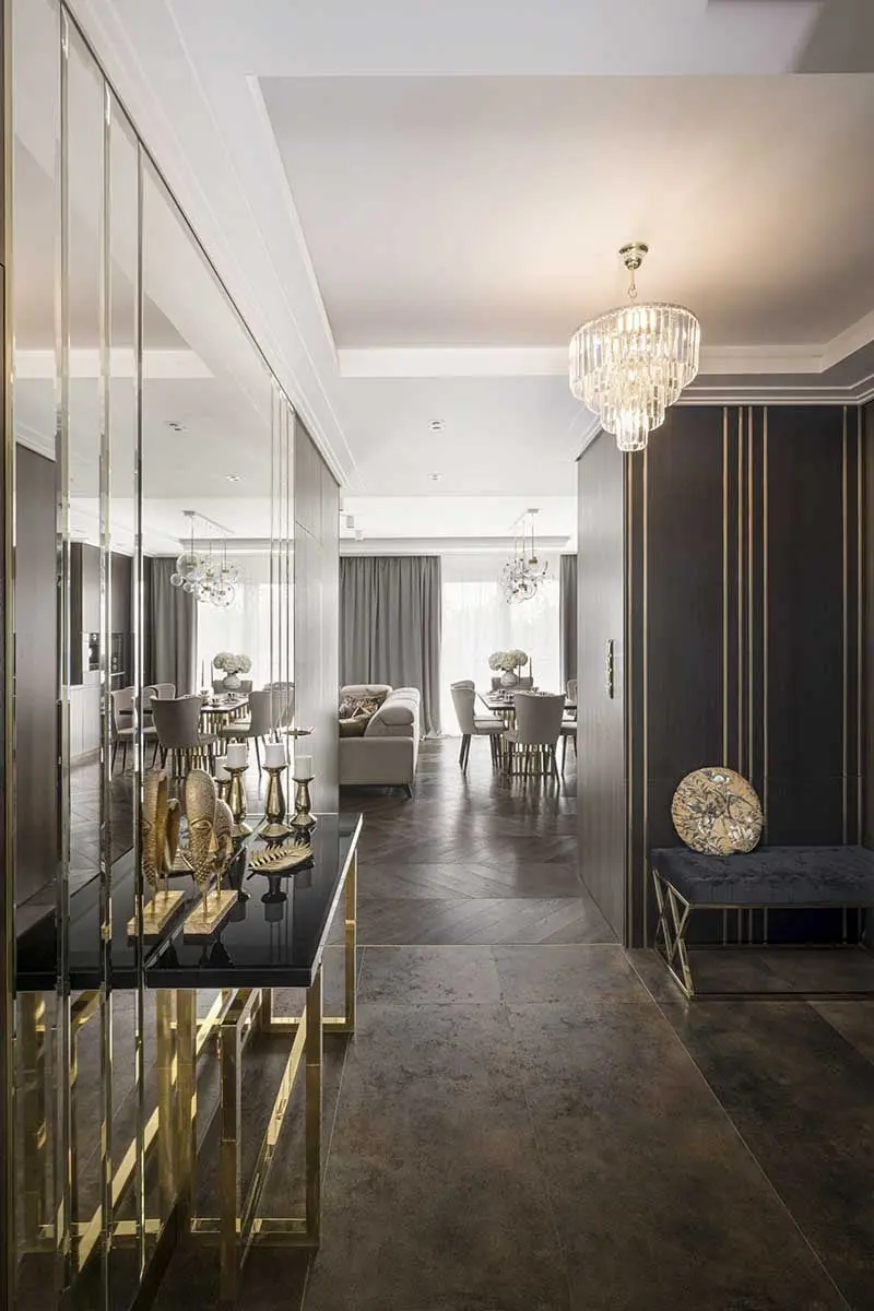 Apartament powstał dla rodziny o jasno sprecyzowanych oczekiwaniach. Przestrzeń miała być wyrafinowana, pełna elegancji i przykuwająca wzrok intrygującymi detalami. Projekt powierzono Magdalenie Miśkiewicz, która idealnie odpowiedziała na potrzeby inwestorów. W efekcie powstało wnętrze, które nikogo nie pozostawia obojętnym.