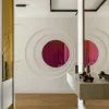 Zaokrąglone ściany i miękko poprowadzone zabudowy wprowadzają przyjemną dla oka płynność. Poszczególne wnętrza nie kończą się ostrymi liniami, raczej łagodnie przechodzą z jednej funkcji w drugą.
