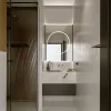 Największym wyzwaniem realizacyjnym była precyzyjna koordynacja kamiennej wyspy oraz stolarskich detali. Właśnie w takich momentach ujawnia się prawdziwa jakość tego projektu. Apartament nie epatuje bowiem luksusem, raczej go sugeruje, operując fakturami, światłem i proporcją. Efekt „wow” pojawia się dyskretnie; w miękkich liniach zabudowy, głębi rysunku kamienia i starannie wybranym wyposażeniu. To współczesne quiet luxury w najbardziej dojrzałym wydaniu.