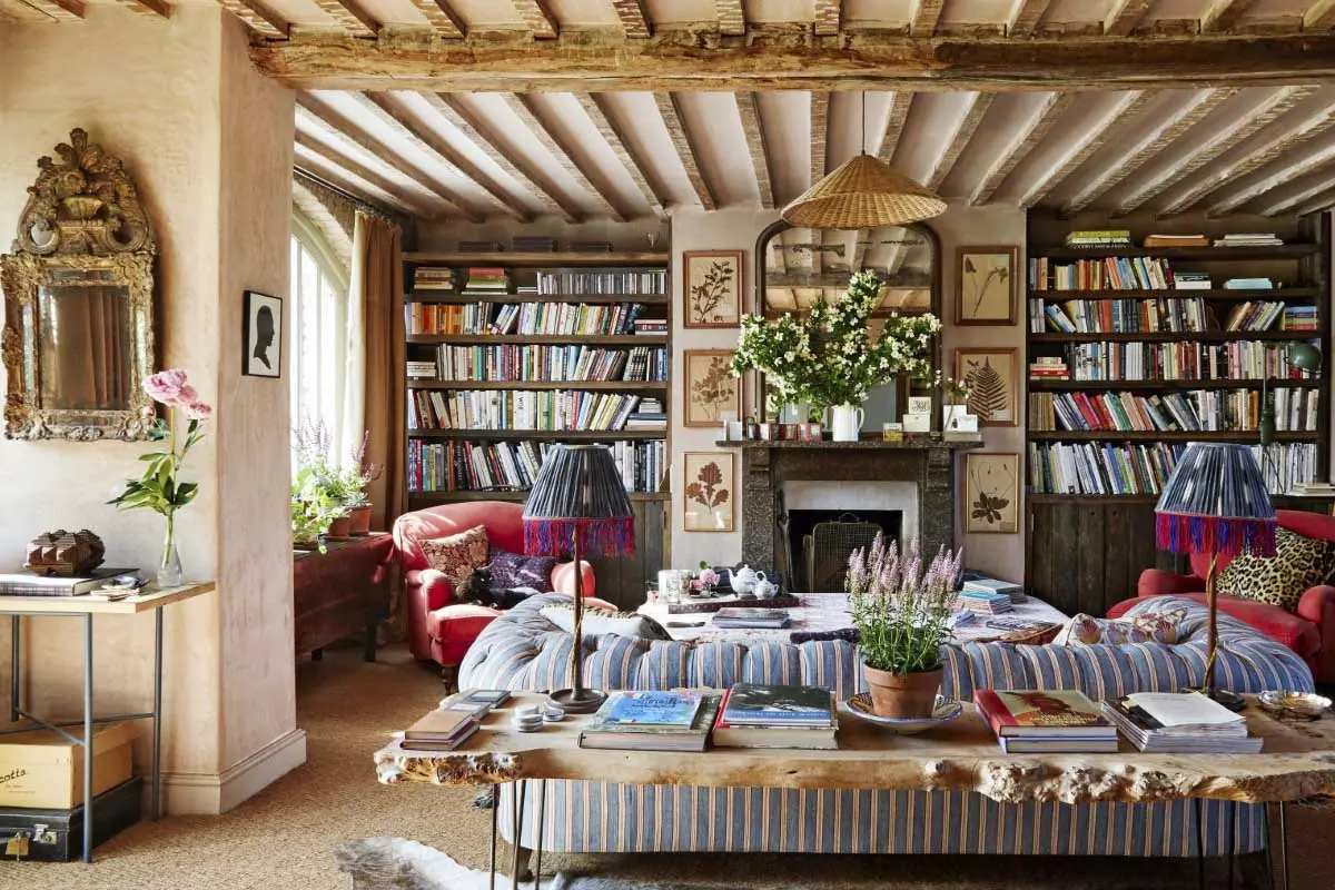Żaden angielski dom nie jest kompletny bez półek wypełnionych książkami oraz przytulnego kącika do czytania. Właśnie czytanie jest jedną z najbardziej popularnych form spędzania czasu przez Anglików, zarówno w przeszłości, jak i obecnie. Natomiast domowe biblioteczki traktowane są nie tylko jako zbiór lektur, ale też dekoracja wnętrza i jeden z elementów określających styl angielski. Najbardziej powszechne jest pokrywanie całych ścian półkami, które wypełniają książki, dekoracyjne podpórki oraz pamiątki.