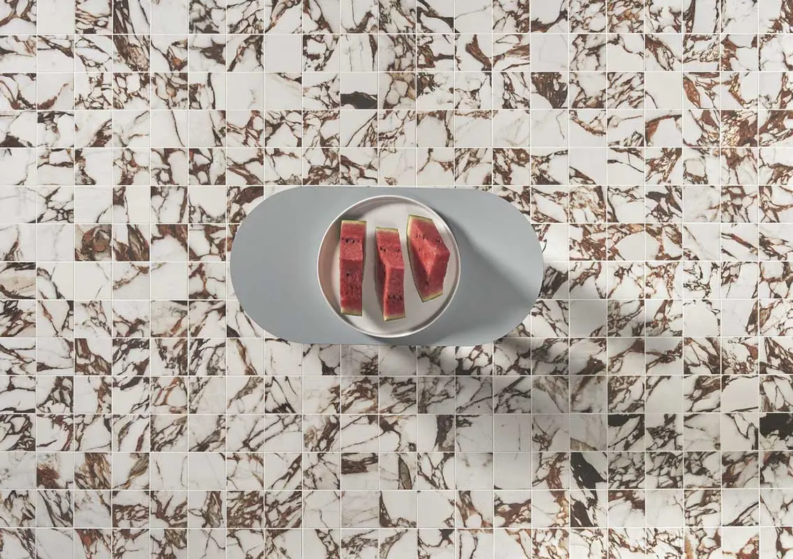 Nowa kolekcja płytek 41zero42 to seria PULP. Płytki o różnym zabarwieniu z żyłkami marmuru. Mamy do wyboru pięć kolorów: Blue, Red, Black, Green i oczywiście nie mogło zabraknąć płytki w odcieniu Gold. Dostępne są w czterech rozmiarach od mozaiki po płytki wielkoformatowe: