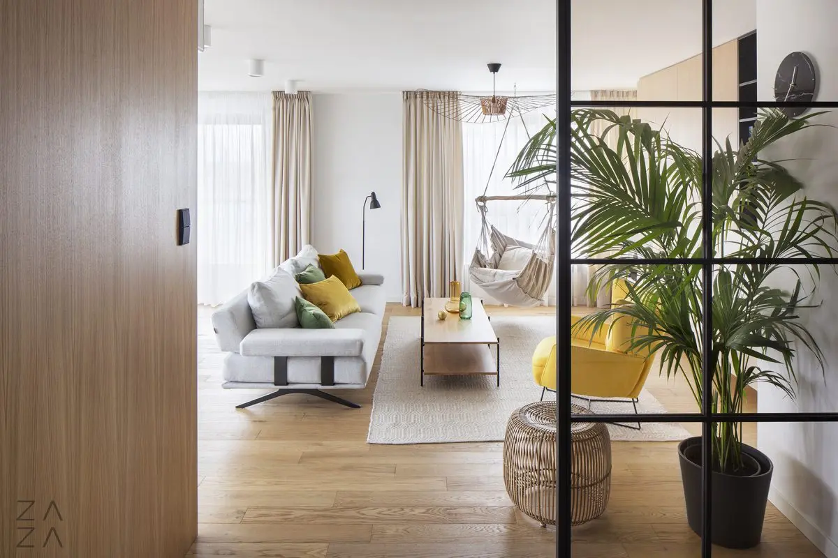 Podobnie jak ta stołowa, musztarda w aranżacji wnętrza lubi dobre towarzystwo i w zależności od niego może eksponować różne swoje cechy. W zestawieniu z butelkową zielenią, bordo lub granatowym będzie szlachetnym dopełnieniem wystroju. Przy szarościach, bieli i czarni zyska na świeżości i ożywi zestaw. Możemy się też pokusić o mniej oczywiste operowanie brudnym złotem. Niech musztarda zaszaleje z millennial pink tworząc pełne energii połączenie. Niech wda się w romans z lawendą albo zgaszoną brzoskwinią i pozwoli im przy sobie rozkwitnąć. Spróbujecie?