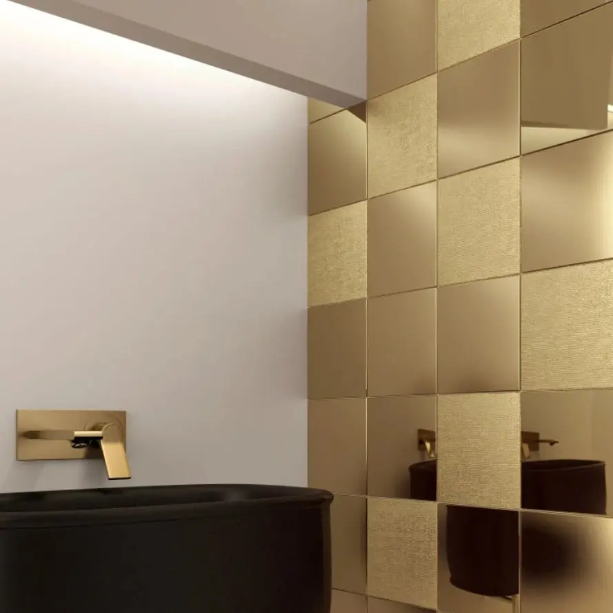 W ofercie INTHETILE odnajdziemy zróżnicowane, wyjątkowe i luksusowe metalizowane płytki ceramiczne, dzięki którym wnętrza otrzymują nietuzinkowy charakter. Płytki głównie dostępne w kolorze szlachetnego złota, matowe oraz błyszczące, ale także srebrne, w kolorze różowego złota, czy metalizowanym fiolecie. Niezwykle kreatywne z namiastką luksusu.