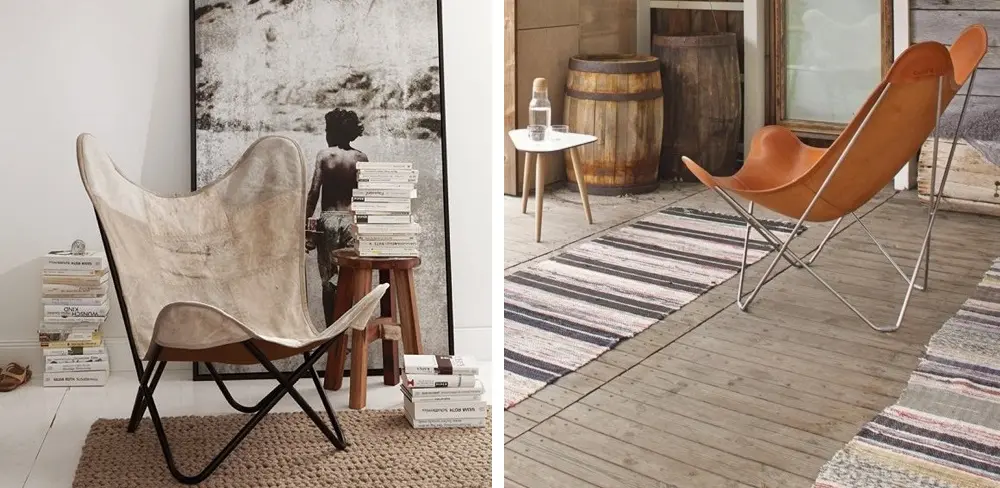 Butterfly chair, choć posiada prawie osiemdziesięcioletnią historię, a jego źródła sięgają końca XIX wieku, wydaje się być stworzony do współczesnych wnętrz. Wystarczy odrobina zabawy formą. Mebel z lekkim, ażurowym wykończeniem świetnie odnajdzie się we wnętrzach w stylu shabby chic, a etniczne, kolorowe wzory na tkaninie będą perfekcyjnym uzupełnieniem pomieszczeń w stylu folk. Tradycyjne dla tego mebla skórzane siedziska są z kolei tworzone z myślą o stylu inspirowanym egzotycznym safari.