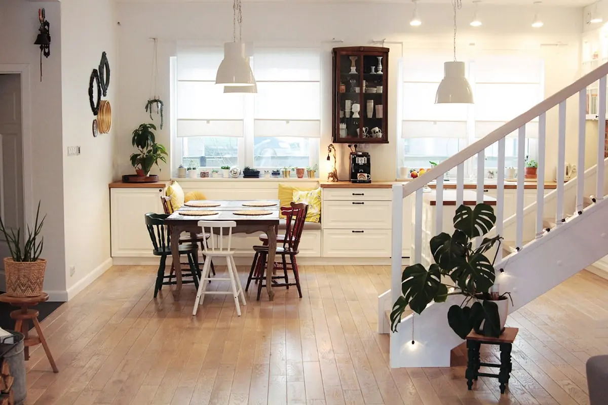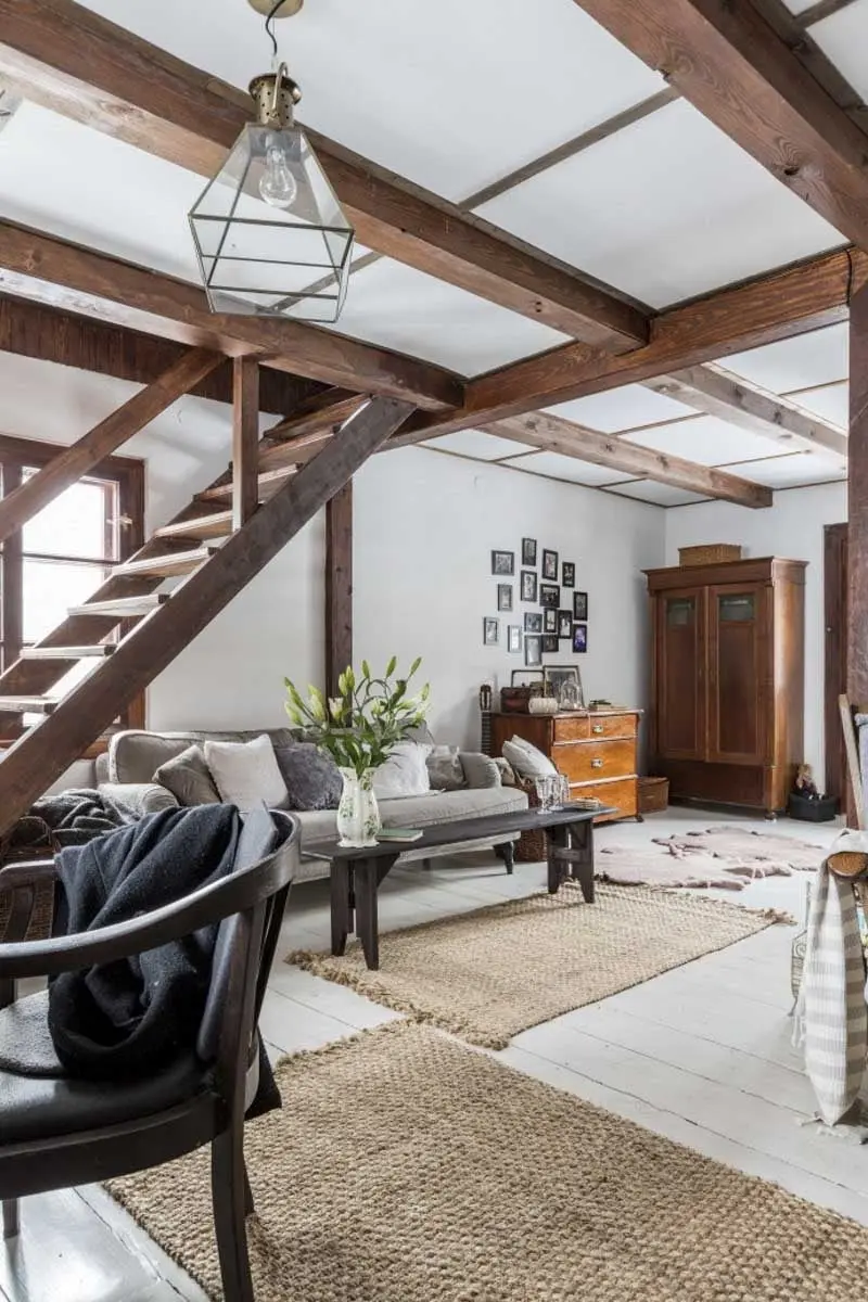 Istotnym elementem aranżacji są meble z duszą, często naznaczone patyną czasu, oraz rękodzieło – zarówno w formie ozdób, jak i użytkowych przedmiotów. Centralnym punktem przestrzeni bywa pięknie nakryty stół, na którym królują ceramiczne naczynia, szlachetne szkło oraz bukiety, najlepiej wykonane samodzielnie. Regały wypełnione starymi książkami, kompozycje z suszonych kwiatów i obrazy w zdobionych ramach dodatkowo wzbogacają wnętrze, podkreślając jego charakter.