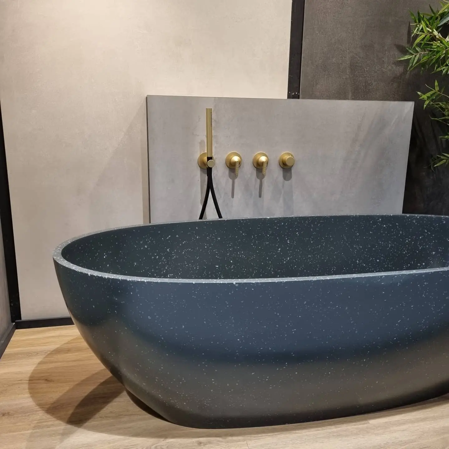 Czarne wanny pasują do każdego stylu. Czarny kolor w łazience najczęściej zestawiany jest z bielą, drewnem, pastelami, złotem. Taki kontrast zazwyczaj wykorzystywany jest w odważnych wnętrzach.