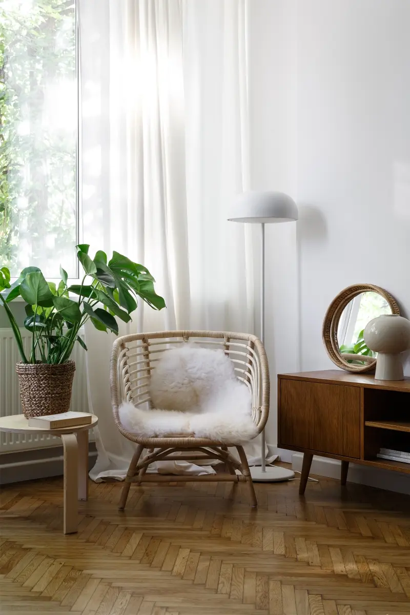 Niewielkie, bo tylko 18-metrowe mieszkanie, zostało urządzone w nietypowy dla Podhala sposób. Architektka ze Studio4design postanowiła połączyć w nim górski klimat ze stylistyką boho. Znajdziemy tutaj futra, plecione dywaniki i koce, pledy, ręcznie robione dekoracje oraz naturalne materiały. Wnętrze zorganizowano tak, by znalazło się tutaj wszystko co niezbędne do wygodnego i komfortowego wypoczynku.