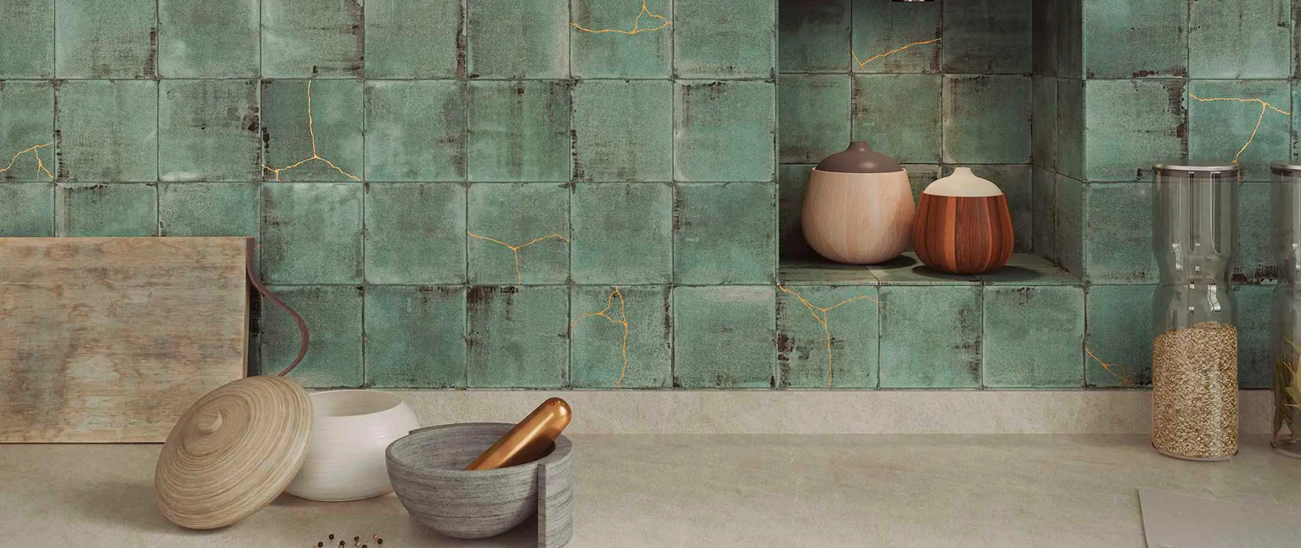 „Nakama” i dekory „Wabi” i „Kintsugi” inspirowane są rustykalną prostotą, spokojem i niedoskonałą jakością każdego obiektu, który nadaje całości elegancji.