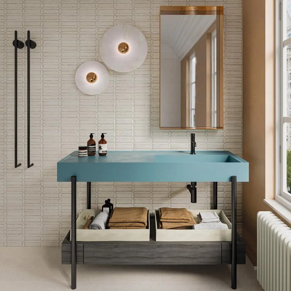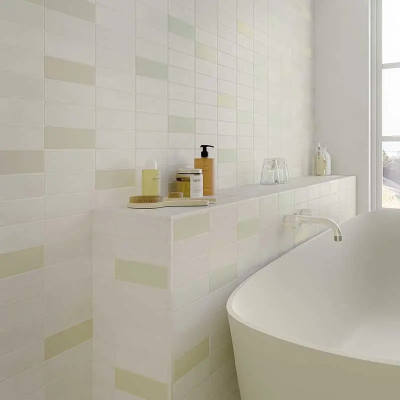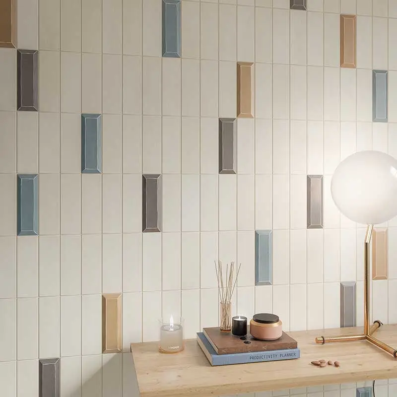 Serie FREE BEVEL to płytki ścienna o subtelnie pochylonych krawędziach, które dodają głębi i wyrazistości całej kompozycji. Dzięki temu, powierzchnia nabiera dynamiczności i unikalnego charakteru, a układ płytek staje się jeszcze bardziej interesujący wizualnie.