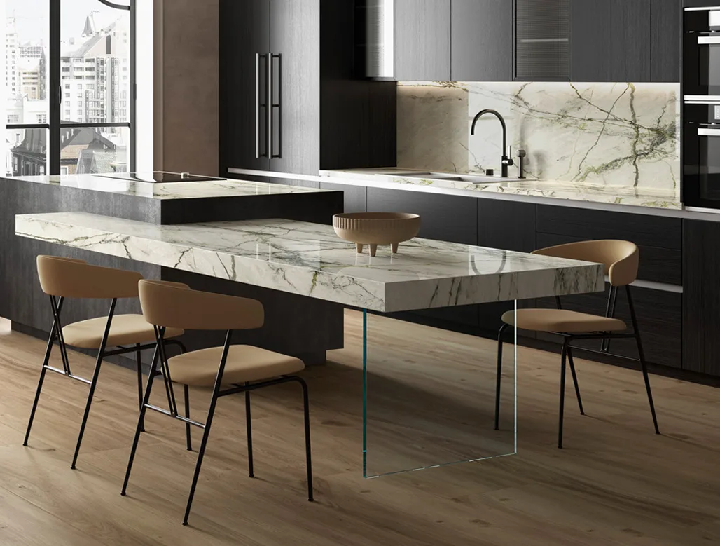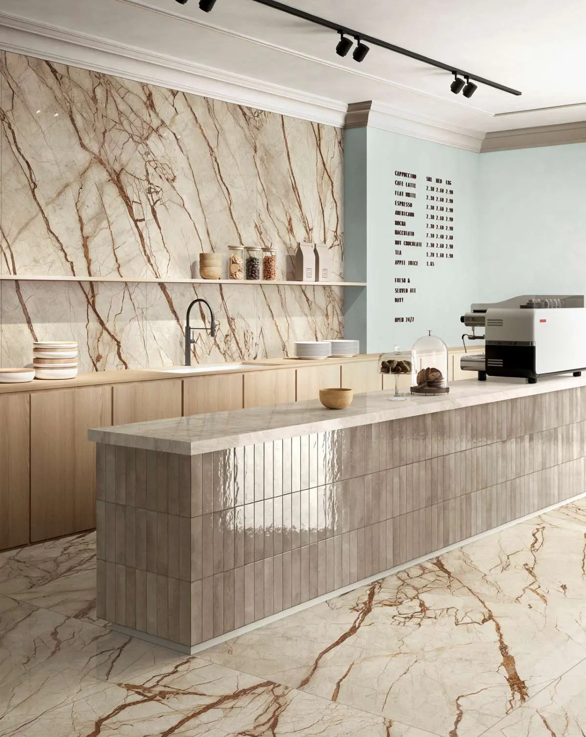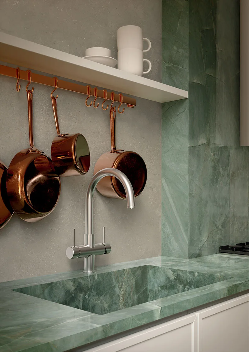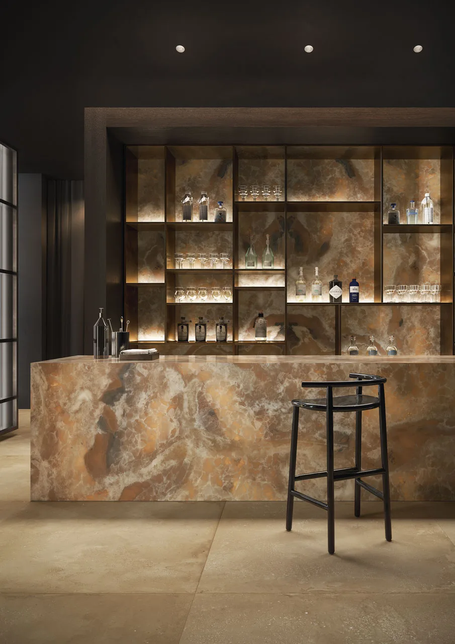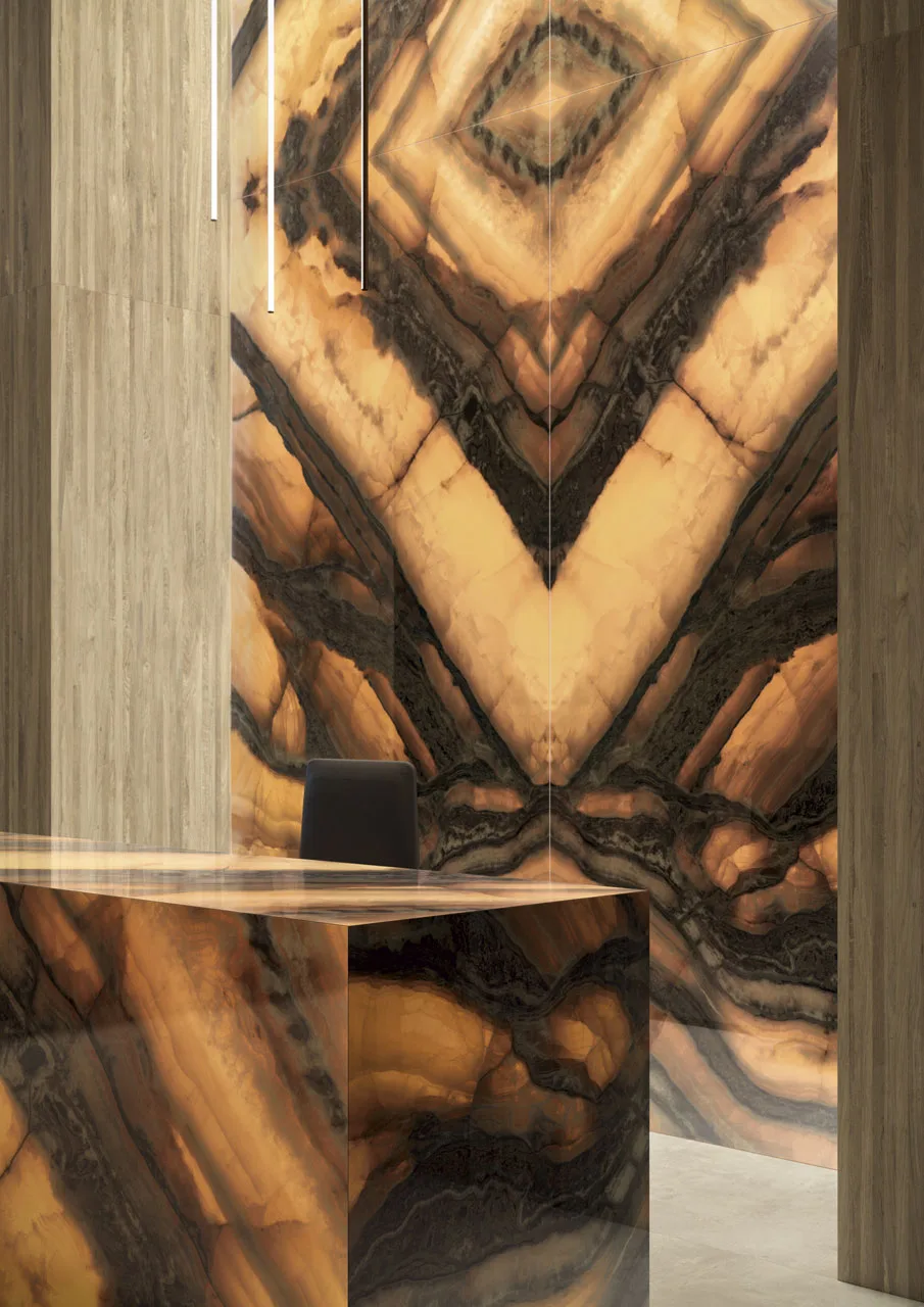 Dostępne w wykończeniach polerowanych, matowych oraz naturalnych, wielkoformatowe płyty o wymiarach 160×320 cm to propozycja dla tych, którzy pragną nadać wnętrzom wyrazisty i oryginalny charakter. Świetnie komponują się zarówno z klasycznymi meblami w stylu vintage, jak i z nowoczesnym wzornictwem.
