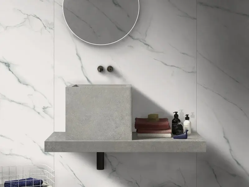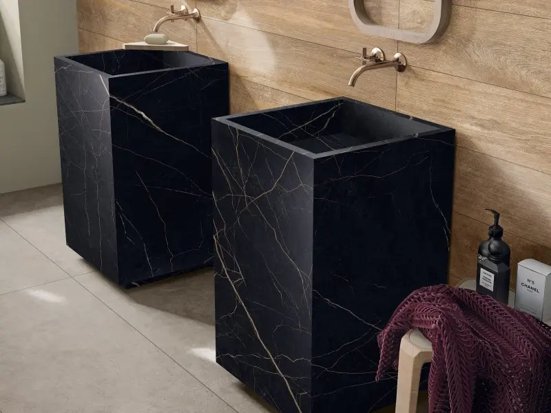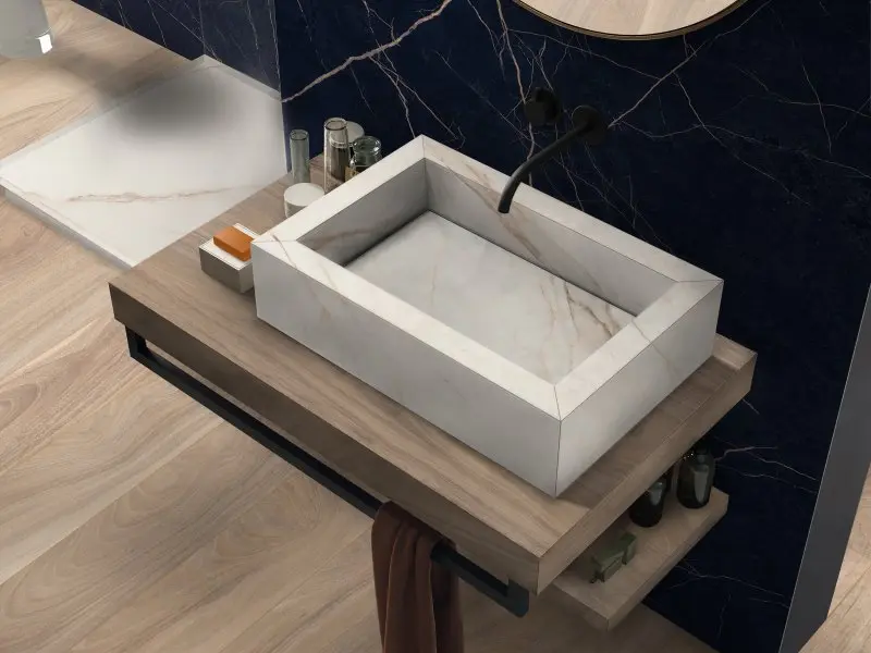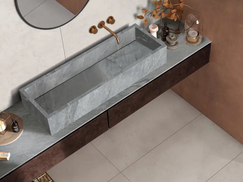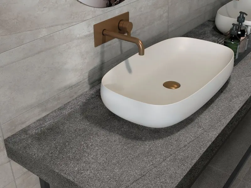 Możliwość użycia płytek wielkoformatowych do wyrobu umywalek wynika przede wszystkim z ich bardzo dobrej jakości. Niezwykle trwały materiał, który jest odporny na zarysowania, łatwy w utrzymaniu w czystości, nie rysują ich środki czystości.