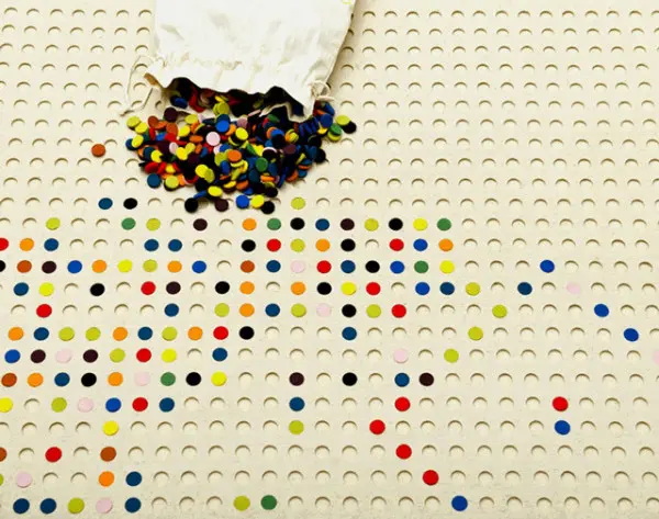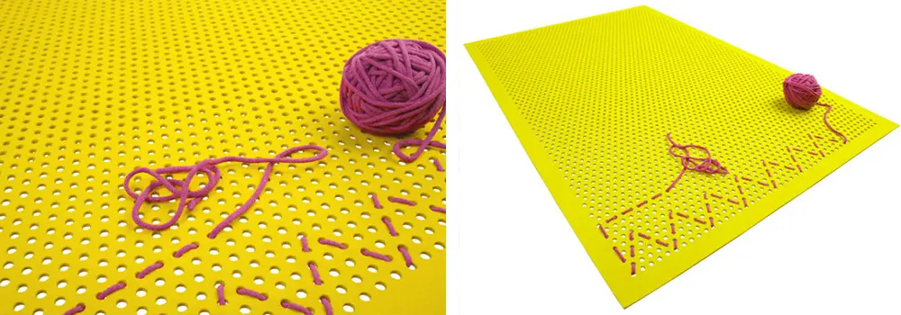 Dla nieco starszych dzieci, ale także i młodzieży, przeznaczony jest dywan Dot. Za pomocą kolorowego włóczka, na filcowym dywanie pełnym małych otworów, możemy tworzyć niemal nieograniczone wzory, powiązania i struktury. Przy odpowiednim zaangażowaniu i rozplanowaniu układu, możemy stworzyć bardzo ciekawą kompozycję, będącą jednocześnie doskonałym dodatkiem dekoracyjnym każdego pokoju dziecięcego i młodzieżowego. Ograniczeniem w takim wypadku jest jedynie nasza wyobraźnia.