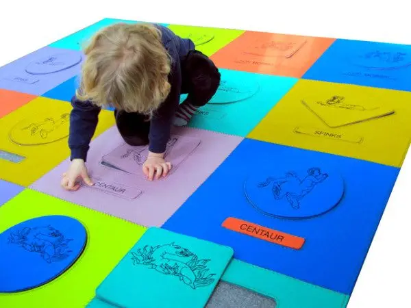 Doskonałym pomysłem, które sprawdzi się m.in. w przedszkolach dla nieco starszych dzieci, są tzw. dywany dydaktyczne, czyli nie tylko rozwijające zdolności percepcji i kreatywności, ale także wnoszące walor wiedzy, tj. uczące nowych rzeczy, w tym także pojęć i figur. Przykładem takiego rozwiązania jest mitologiczny dywan od Joanny Rusin, który za pomocą techniki skojarzeń, uczy podstawowych postaci z mitologii. Dziecko nie tylko dopasowuje konkretne figury i kolory, ale także czy się nazw postaci, które przedstawione są na obrazku. Takie rozwiązanie można zastosować do niemal każdego motywu tematycznego.
