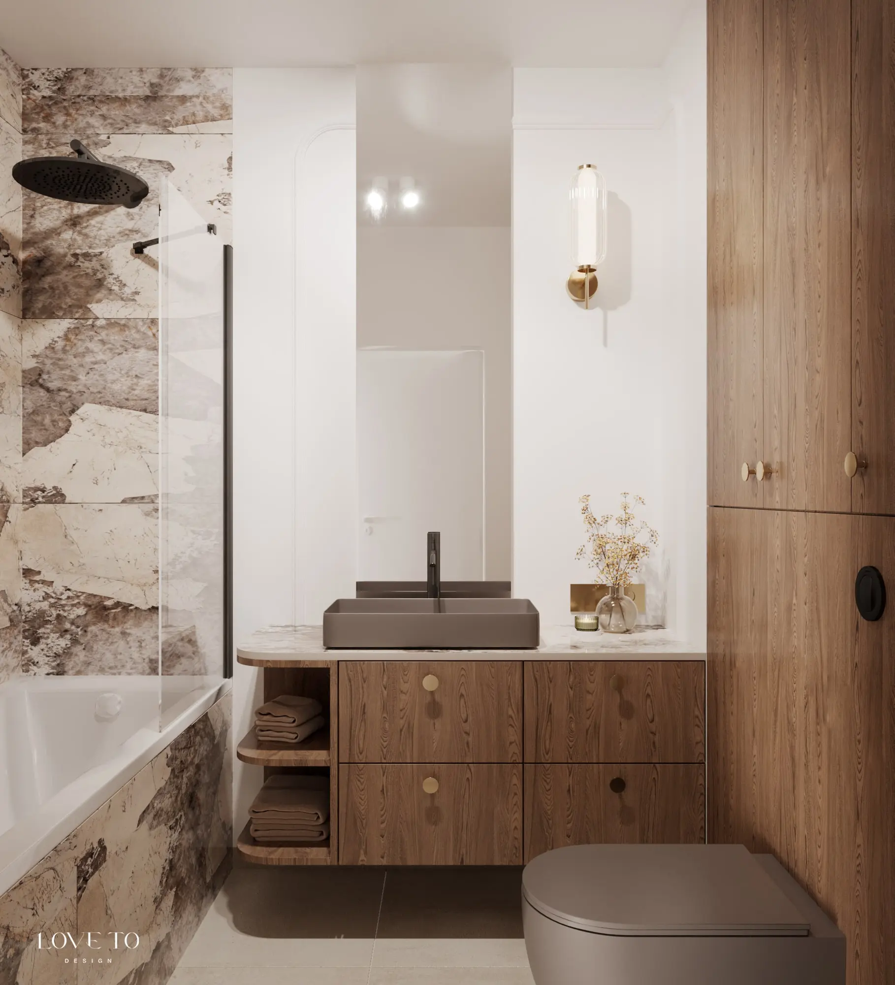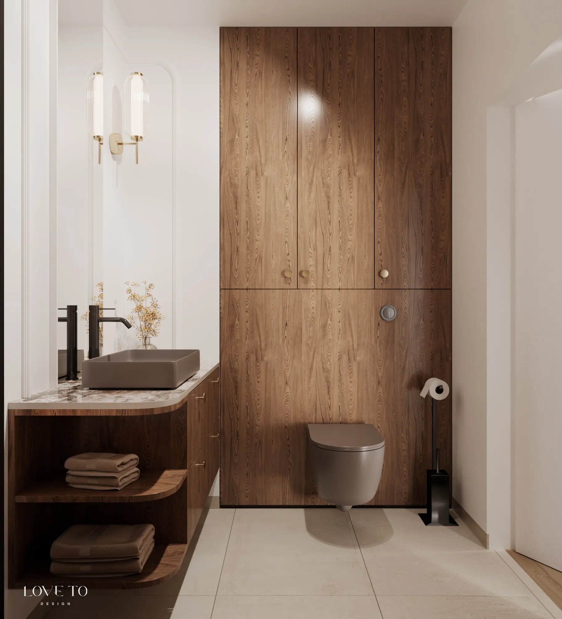Jak urządzić ponadczasową łazienkę z kolorową ceramiką? Projekt stworzony przez studio LoveTo design doskonale łączy nowoczesność z tradycją. Klasyczna baza oraz najwyższej jakości ceramika łazienkowa w stonowanym matowym kolorze kawy – jak się okazuje – to duet doskonały.