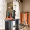 Dzięki swojej neutralności Clay oferuje projektantom dużą swobodę. Może posłużyć do stworzenia monochromatycznych aranżacji – gliniane tynki, terakotowe posadzki, tekstylia i tapicerki utrzymane w jednej tonacji nadają przestrzeni miękkości i transformacyjnego charakteru. Kolor ten świetnie wpisuje się w estetykę minimalistyczną oraz w nurty takie jak wabi-sabi, gdzie istotna jest naturalna paleta, materiałowa niedoskonałość i sensoryczne bogactwo.
