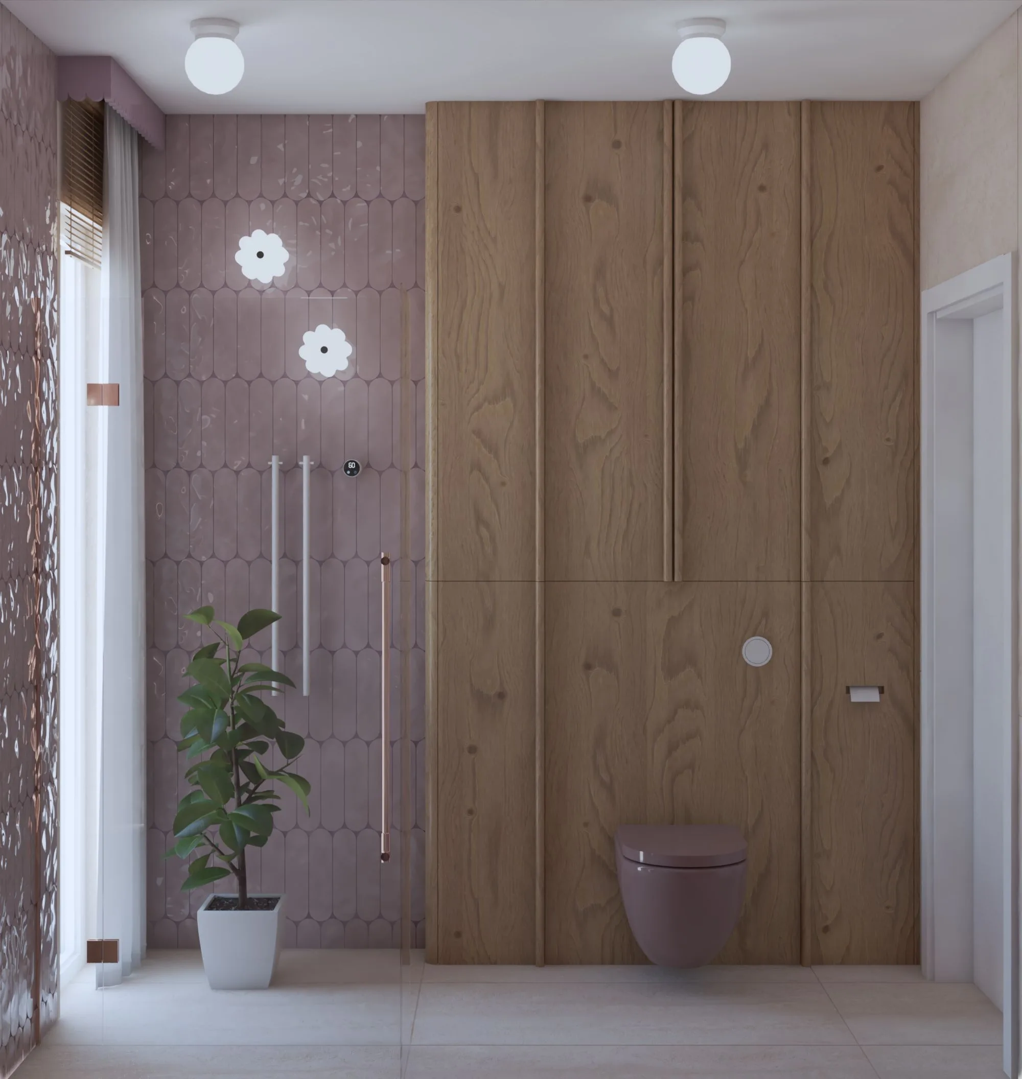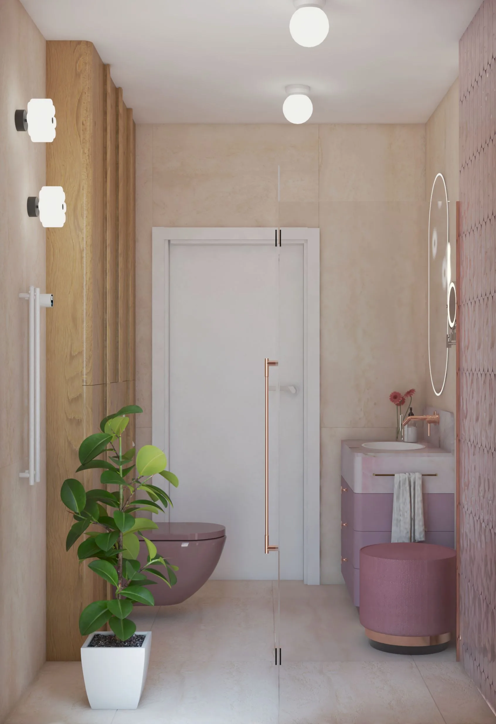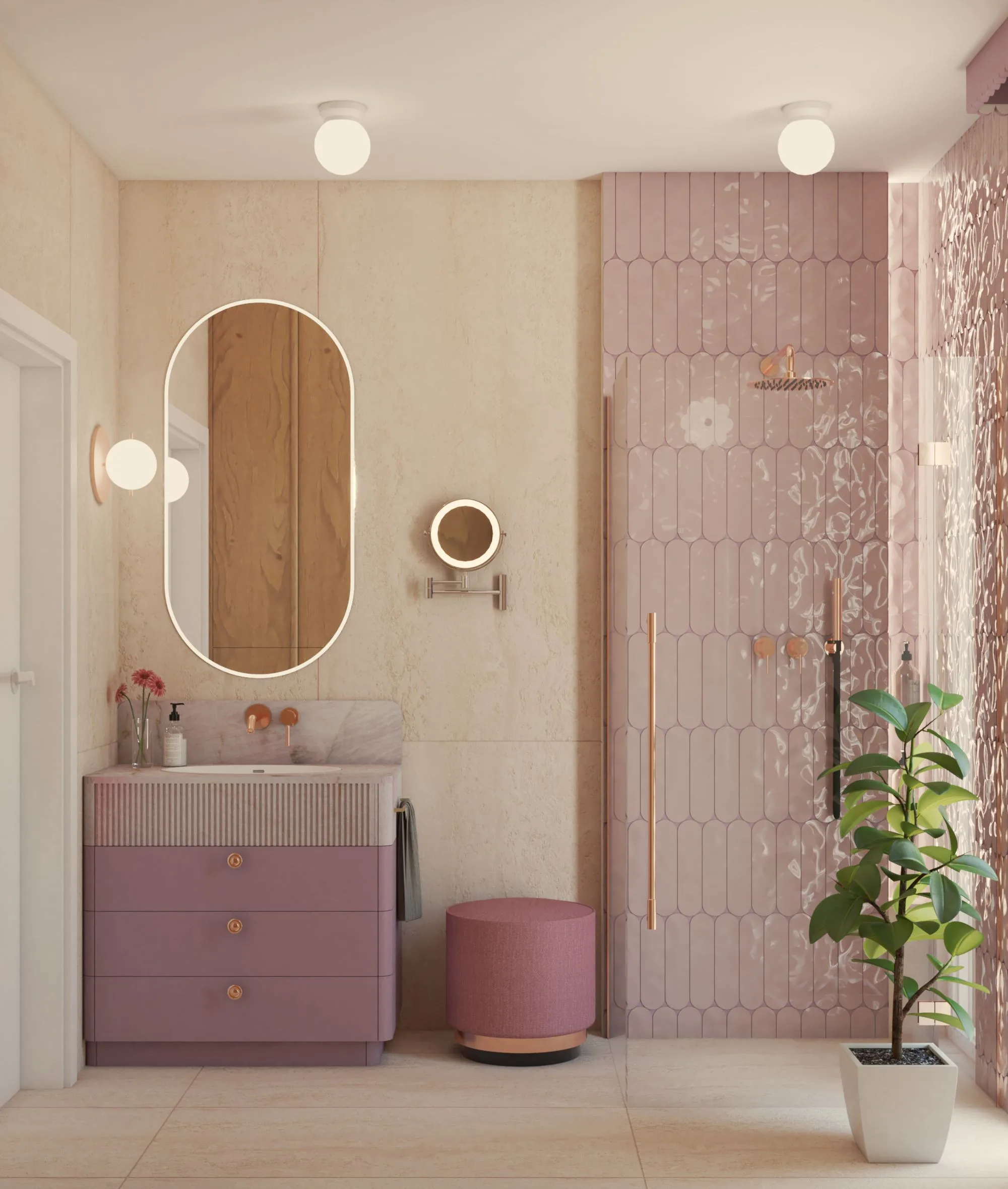 Pudrowy róż i brzoskwinia – delikatne, a nie przesłodzone; genialne jako akcenty w łazience dla dziewczynki.