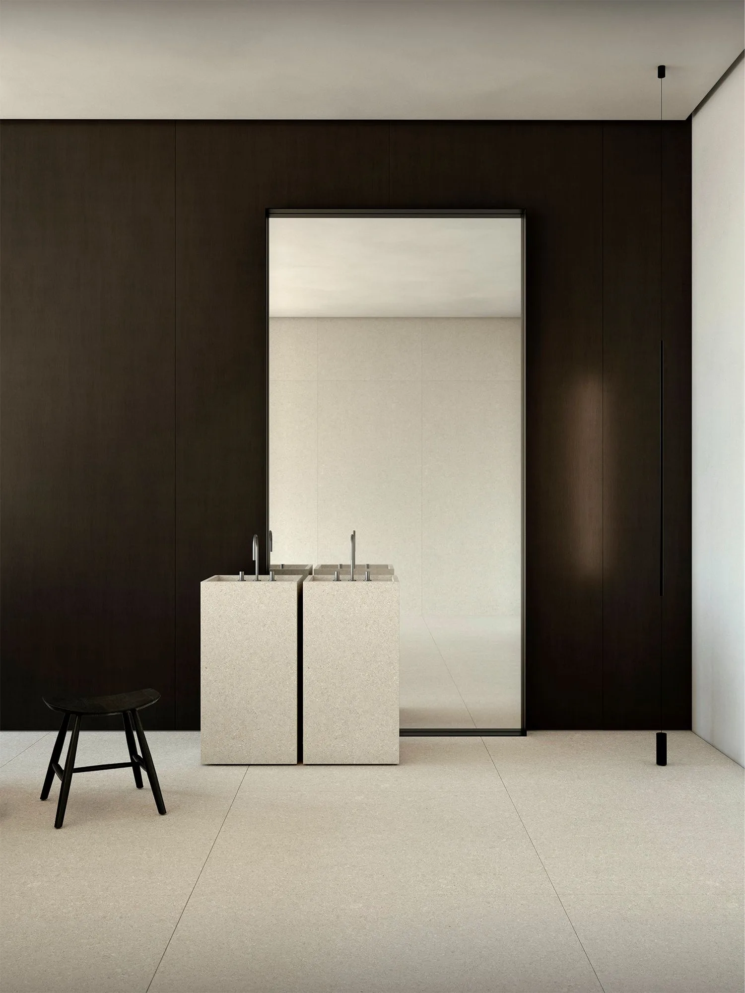 Living Ceramics Frame to kolekcja płytek, która łączy architektoniczną dyscyplinę z naturalną urodą kamienia. Jej zadaniem nie jest rekonstrukcja przeszłości, lecz wprowadzenie trwałości i spokoju do nowoczesnych wnętrz i przestrzeni użytkowych. Precyzyjnie zestrojona paleta, zaawansowana technologia powierzchni oraz szeroki wybór wykończeń sprawiają, że Frame odnajdzie się zarówno w projektach mieszkaniowych, jak i komercyjnych.
