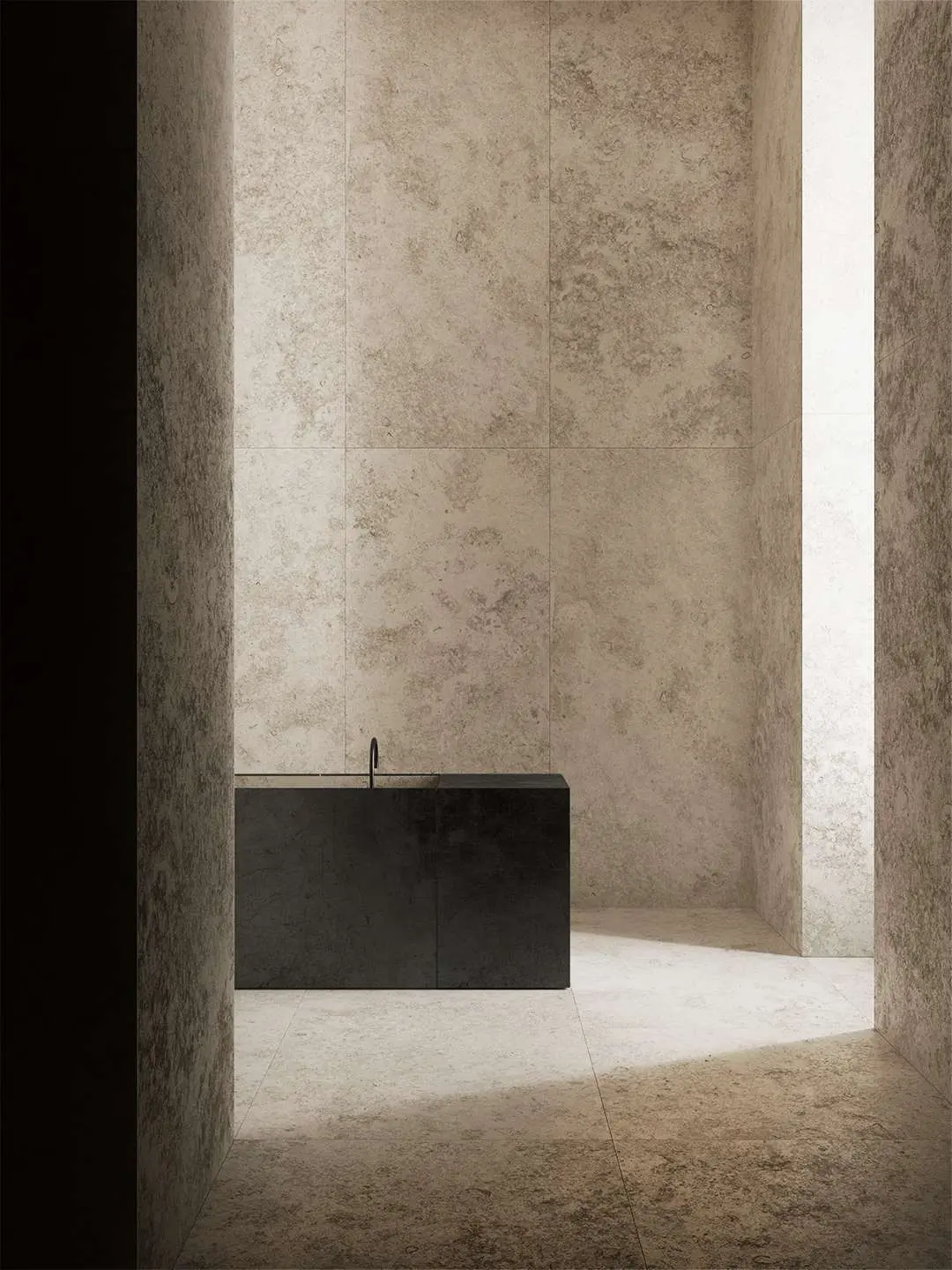 Niepowtarzalny wzór, oddający niejednorodną fakturę kamienia, został przeniesiony na powierzchnię płytki ceramicznej. Wzór i kolorystyka każdej z nich są unikatowe, co pozwala uzyskać efekt powierzchni do złudzenia przypominającej wielkie, kamienne płyty. Całą kolekcję utrzymano w barwach występujących w przyrodzie.