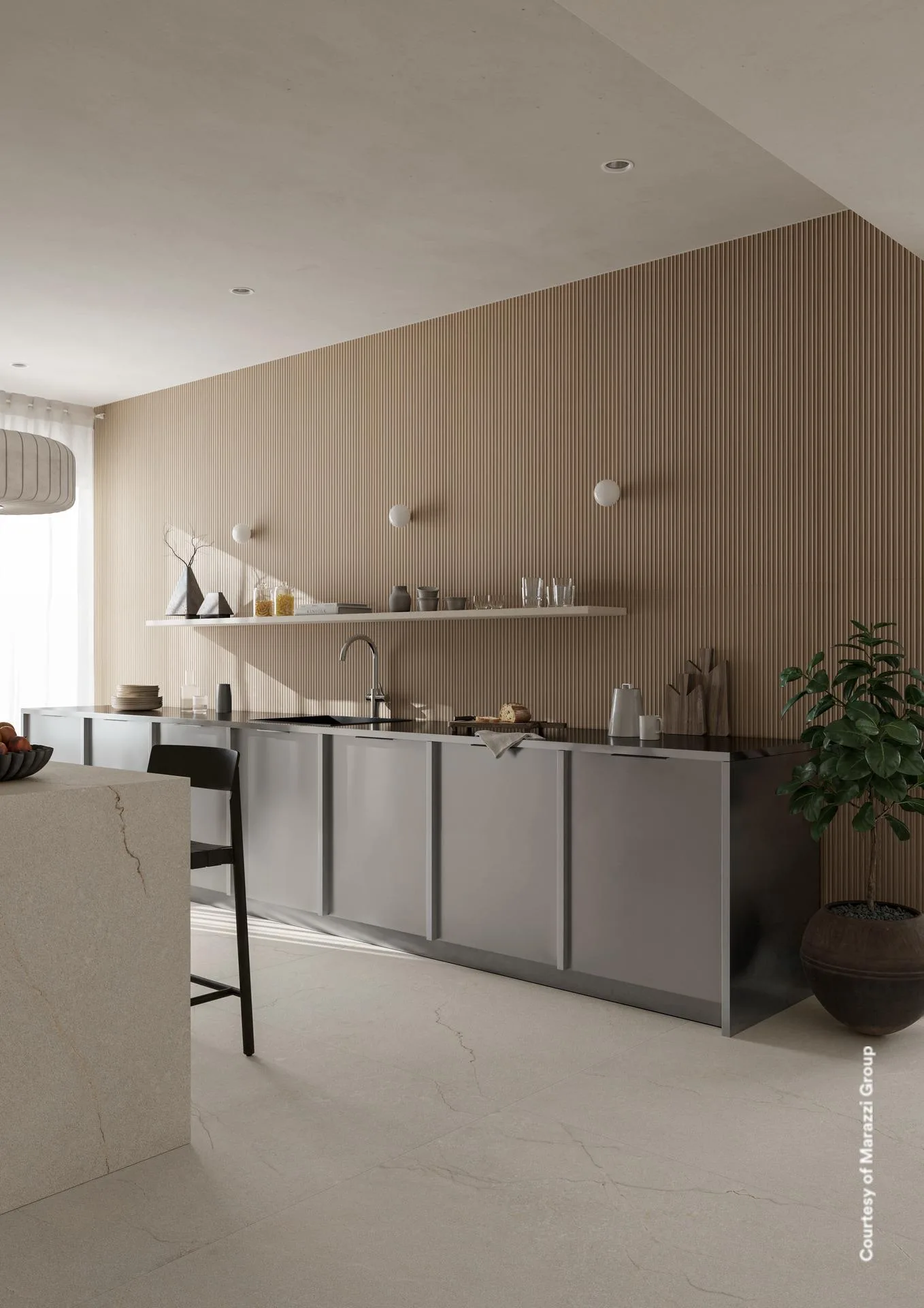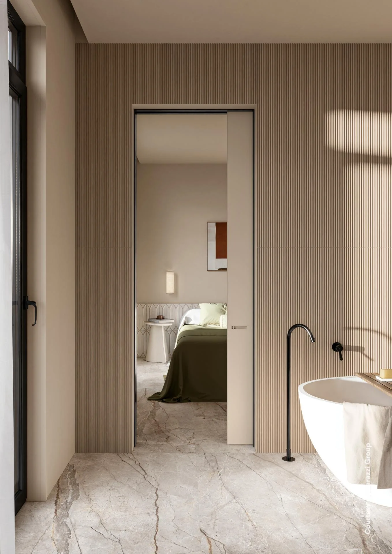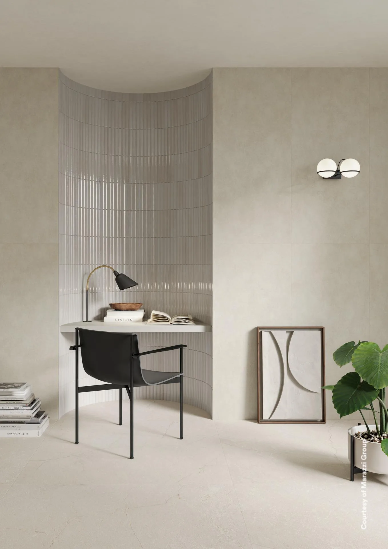 Kiedy myślisz o kanelurach, łatwo wpaść w pułapkę „klasycznego dekoru”. A Marazzi Crea robi to inaczej: bierze inspirację kanelurami doryckimi i przekłada ją na język nowoczesnych wnętrz.