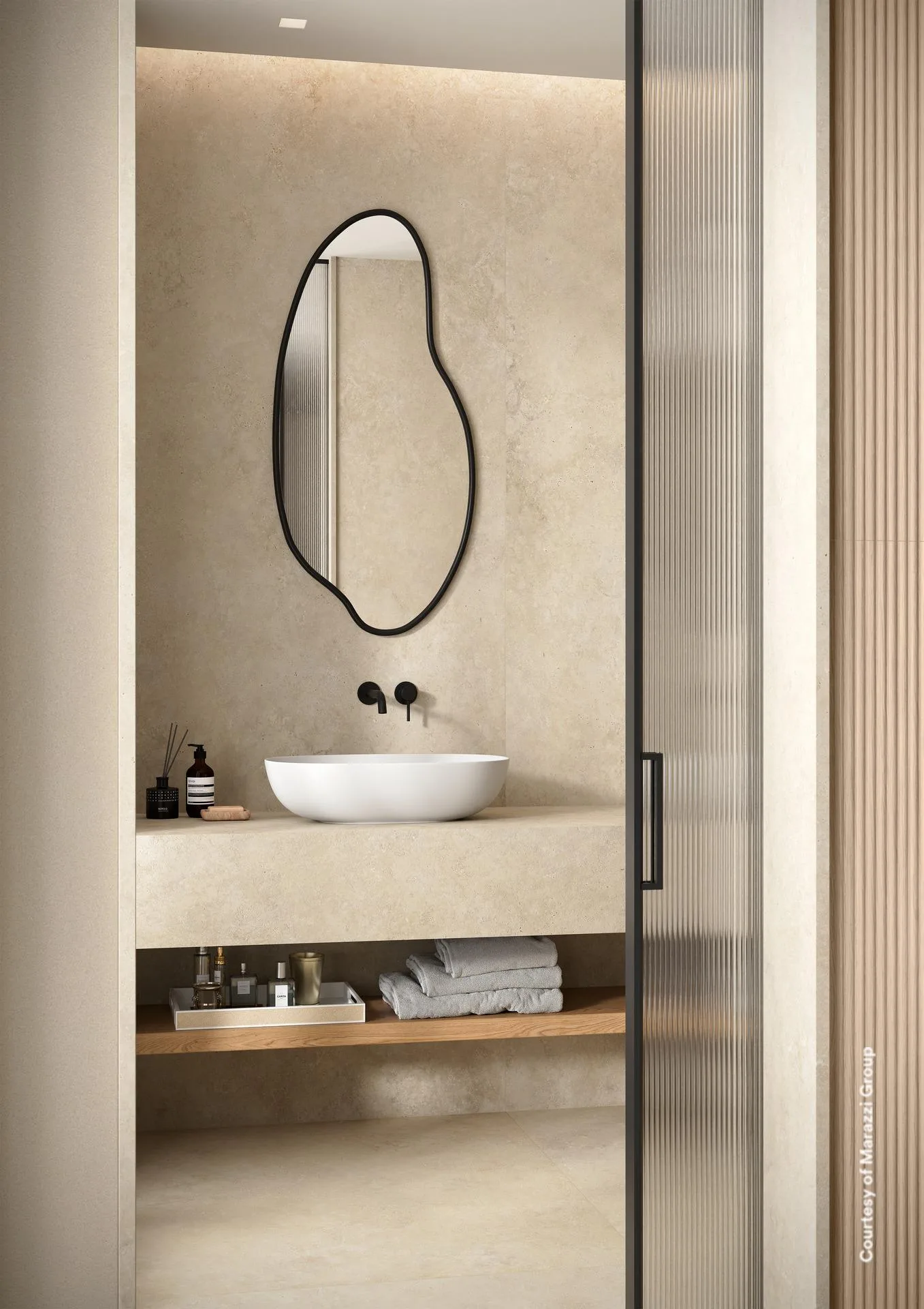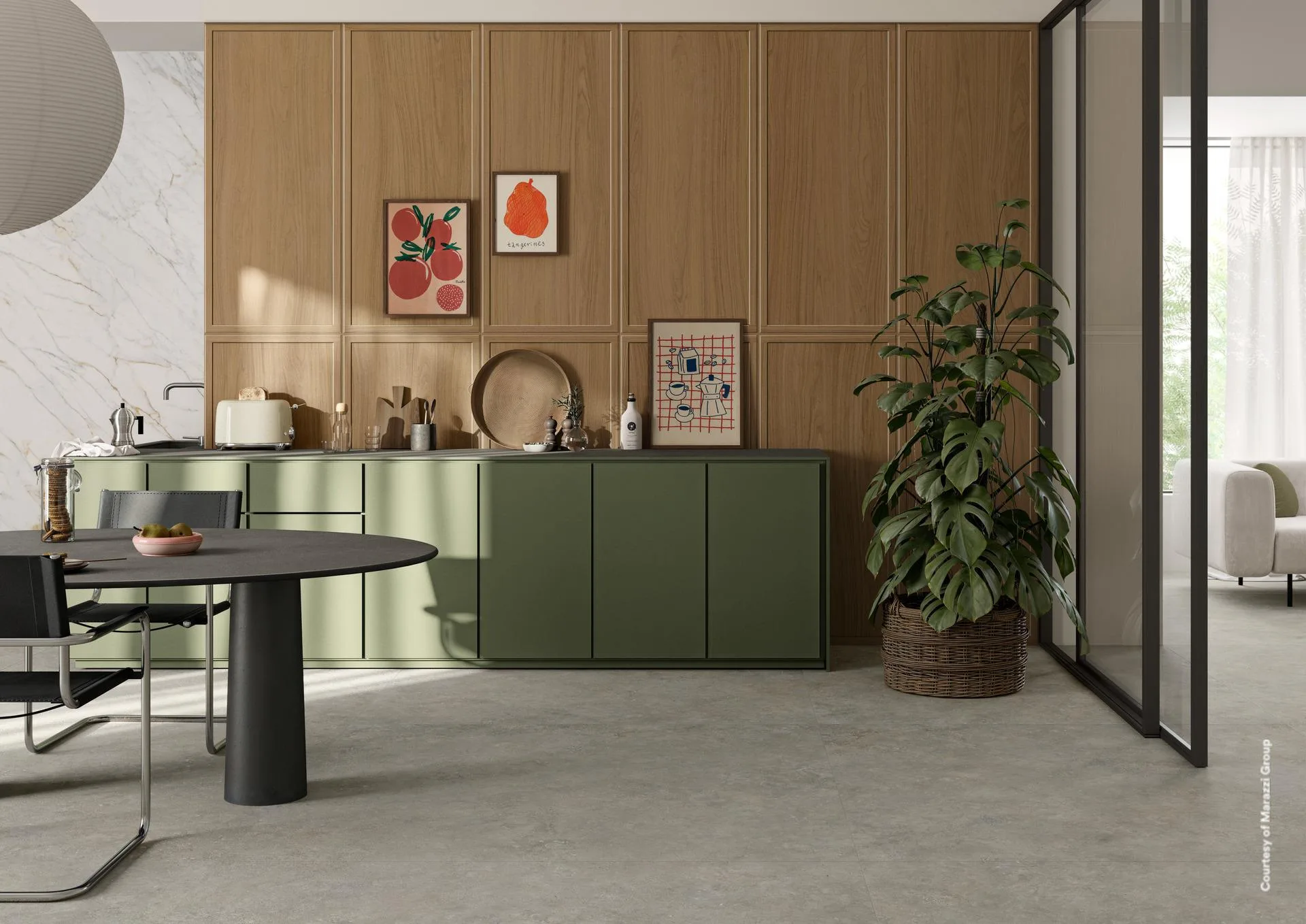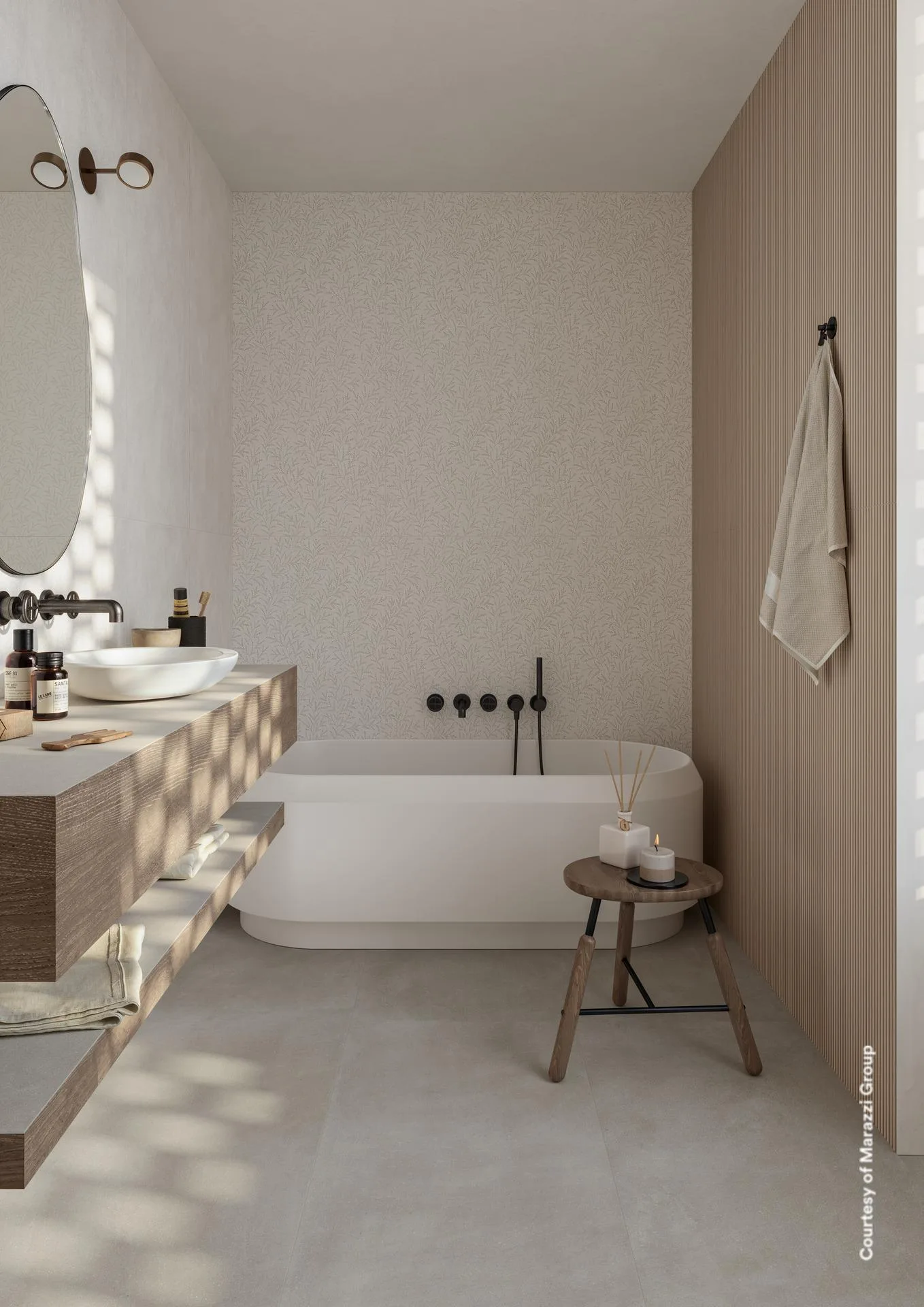 Marazzi Crea lubi towarzystwo materiałów, które równoważą jej precyzję: