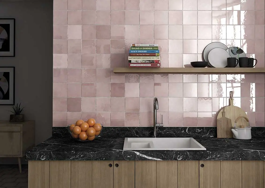 Lśniące ścienne płytki bazowe, dostępne w dwóch formatach jak również listwy wykończeniowe w czterech wersjach. Dzięki temu mamy większą możliwość aranżacji wnętrza. Kolekcja nawiązująca do stylu rustykalnego, z domieszką glamour poprzez połysk. Płytki dostępne: kwadraty 13,2 x 13,2 lub prostokąty 6,5×20 cm.