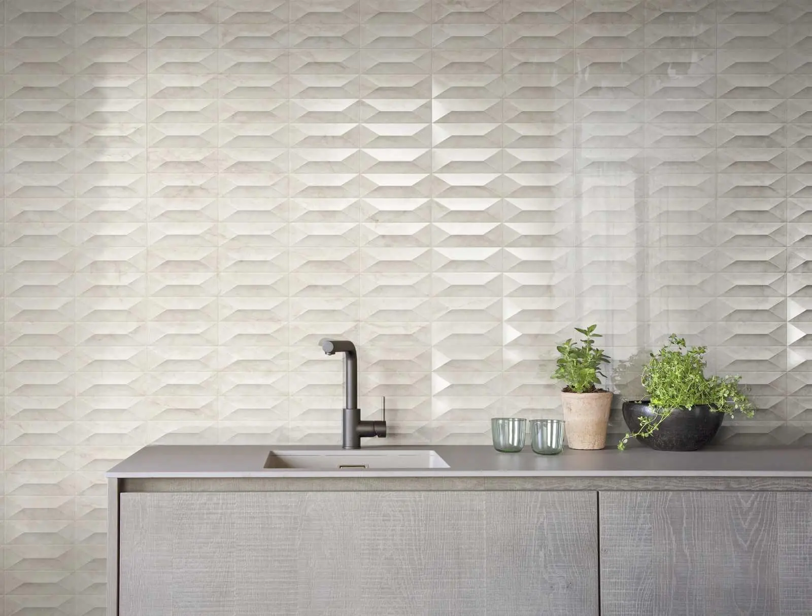 Projekt płytek, który łączy w sobie klasyczny minimalizm oraz nowoczesny styl. Miękkie, linearne wzory, mozaika o modułowych wzorach geometrycznych, dekory inspirowane brokatowymi i adamaszkowymi ornamentami, struktury 3D na płytkach.