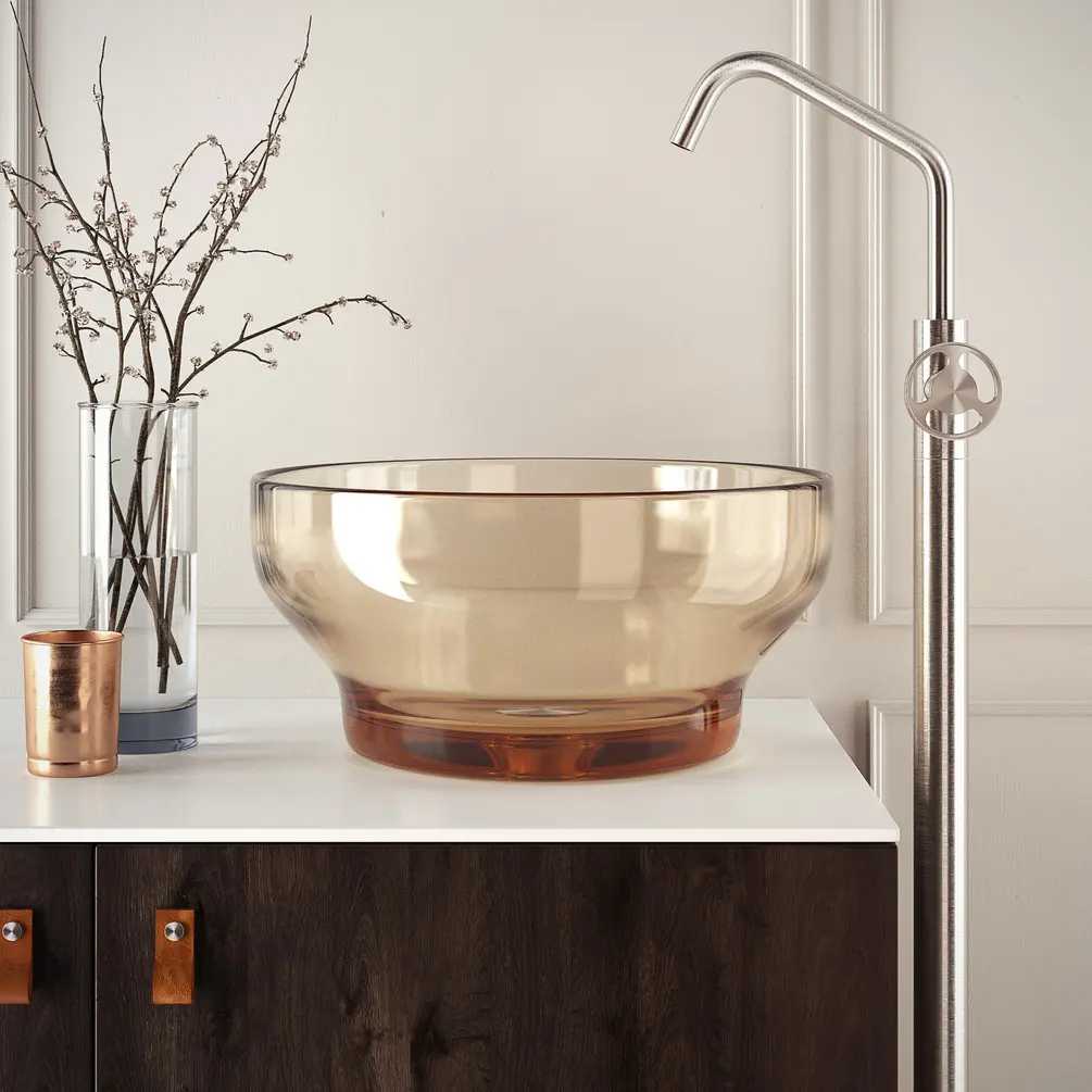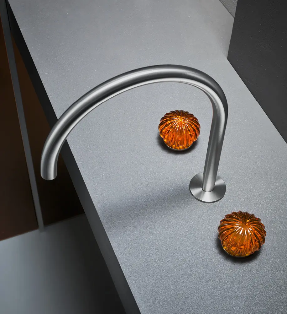 Kolekcja Dorin stylizowana na retro. To seria baterii łazienkowych ze stali nierdzewnej z uchwytami ze szkła Murano. Elegancka i oryginalna linia, w której inspiracja vintage spotyka się z podstawowym i współczesnym designem. Uchwyty dostępne są w dwóch kolorach: topazowym i transparentnym.