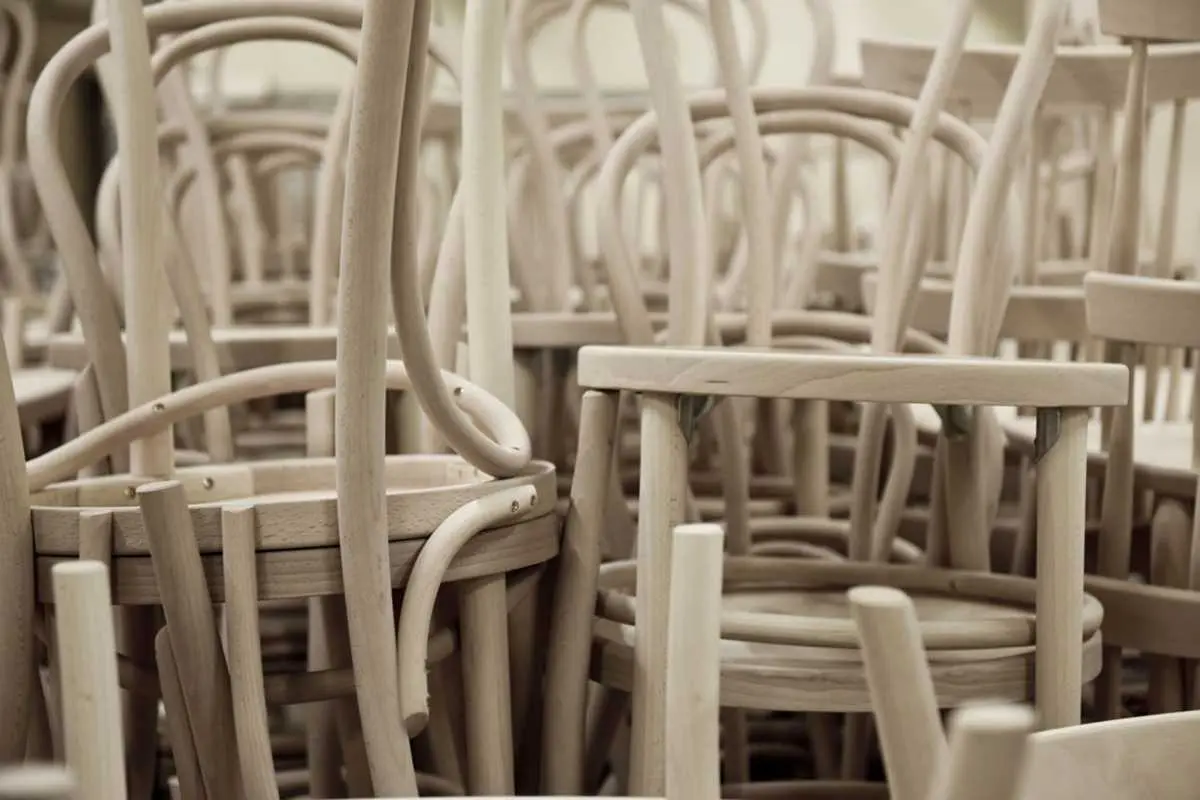 Dzięki parze wodnej i ciśnieniu, drewno bukowe zyskuje wyjątkową elastyczność, pozwalając mistrzom na formowanie w najbardziej nawet fantazyjne kształty. Ten proces opiera się głównie na pracy manualnej, stąd wymaga nieprawdopodobnej precyzji i koordynacji, ale dzięki temu mebel zyskuje wizualną lekkość i wysoką wytrzymałość, niemożliwe do osiągnięcia w produkcji innymi metodami.