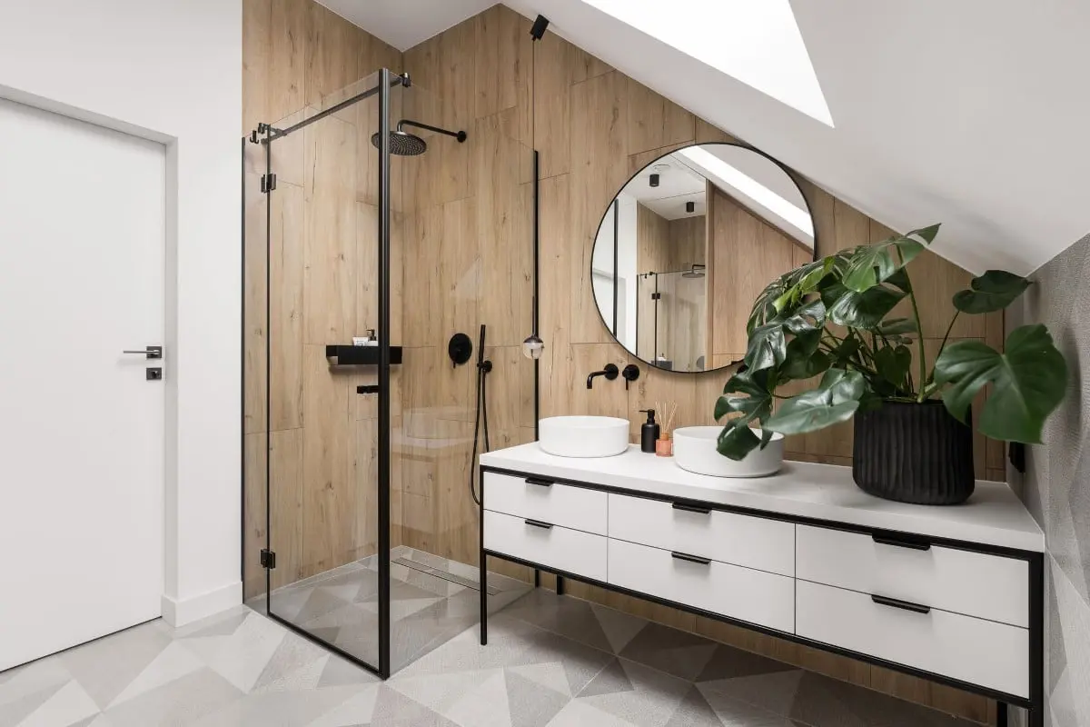 Bardziej monochromatyczny charakter, bez częstych łączeń i fug, otrzymamy wybierając płytki w dużym rozmiarze. Jeśli zależy Ci na zaakcentowaniu danej strefy, np. umywalkowej, prysznicowej czy wc, możesz wybrać inny kształt, np. heksagon, albo typowy dekor.