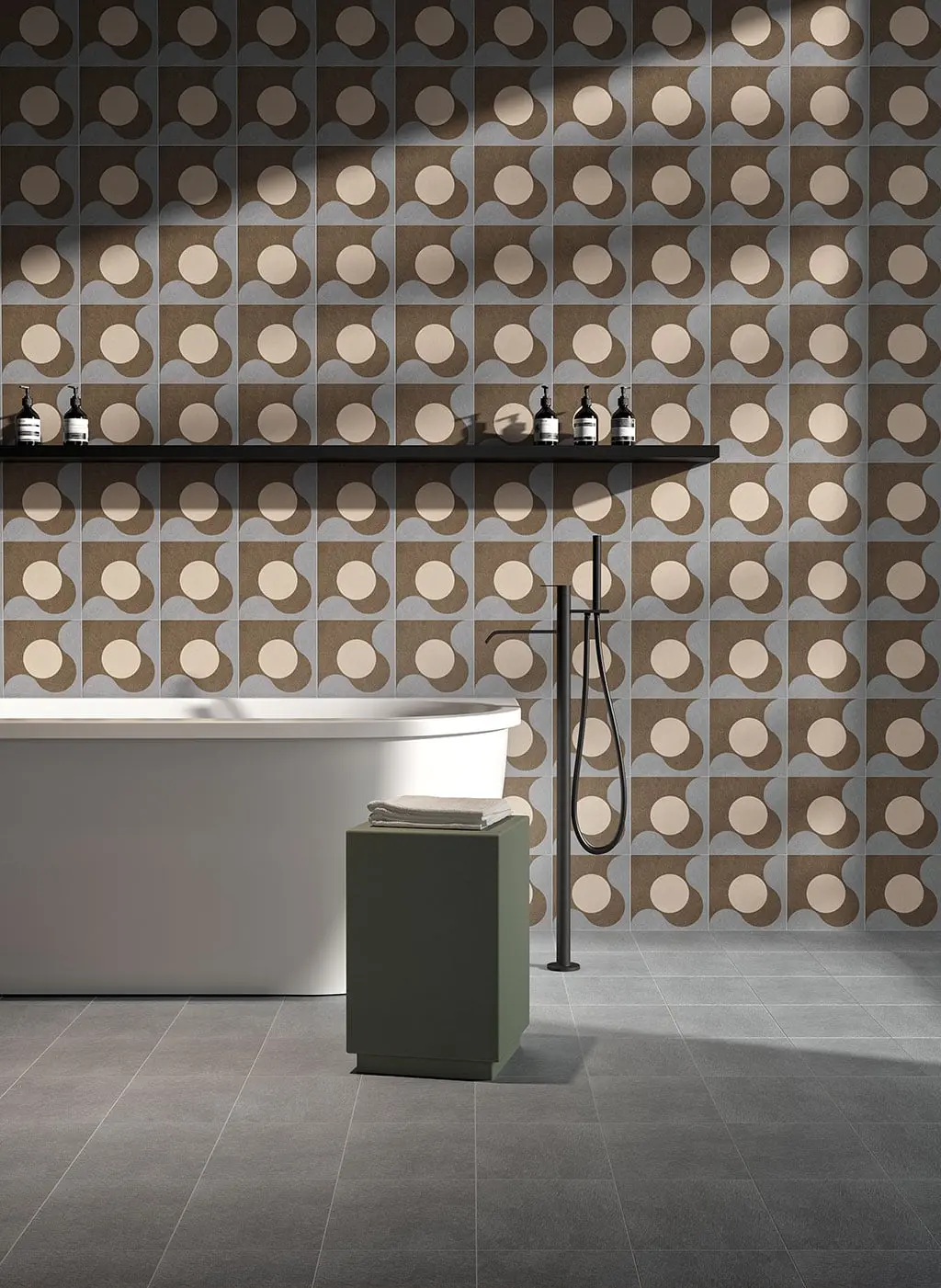 Płytki Liquida to nowa kolekcja, propozycja producenta Fioranese w standardowym rozmiarze 20 x 20 cm. Projekt Davida Tonelli, który nawiązał poprzez grafiki do designu z lat 50. To ciekawe połączenie koloru oraz proces przemiany tradycji w nowoczesny trend. W kolekcji dostępnych jest 6 pastelowych kolorów: kość słoniowa, gołębi szary, róż, szałwiowy, delikatne błękity, czekoladowy. Te barwy uzupełnia 8 wyróżniających się deseni na ozdobnych płytkach stylizowanych na szalone lata 50.