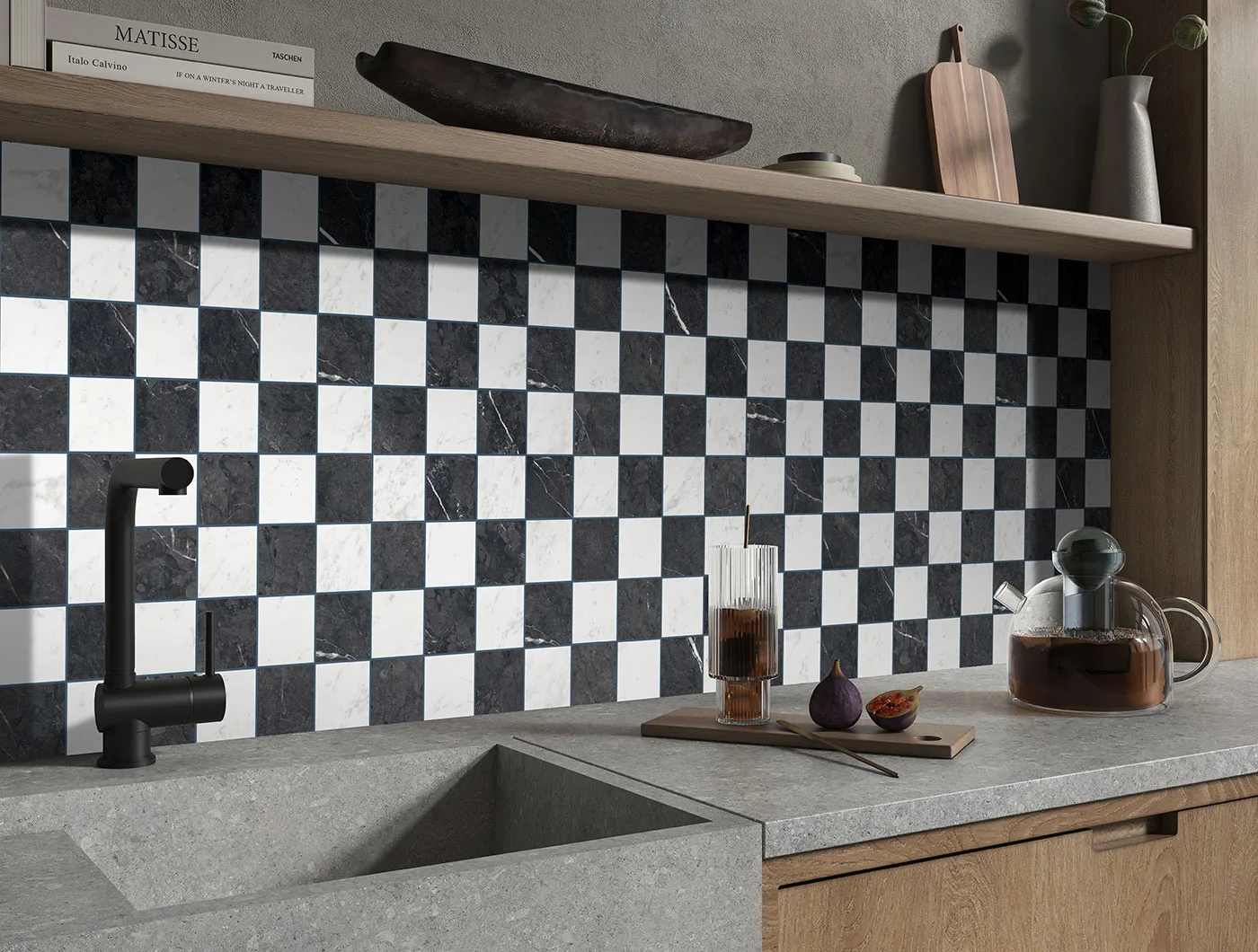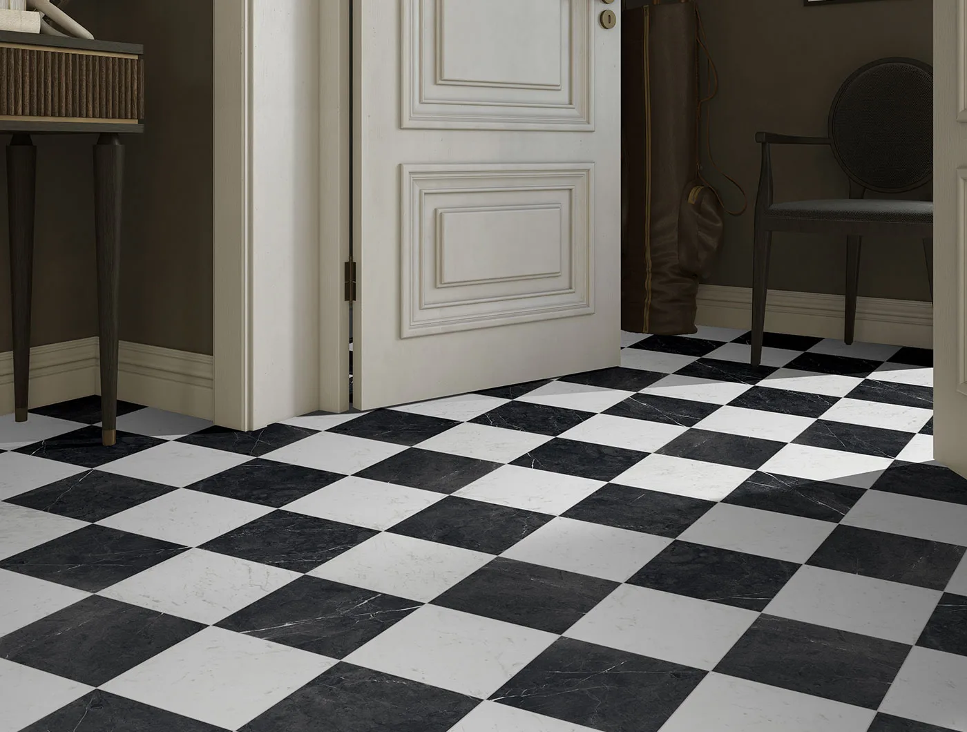 - Nero Marquina Głęboka czerń przełamana białymi żyłkami to esencja wyszukanej elegancji. Ten wzór pozwala na kreowanie wnętrz o luksusowym i tajemniczym klimacie, który świetnie współgra z metalicznymi akcentami oraz szlachetnymi materiałami.