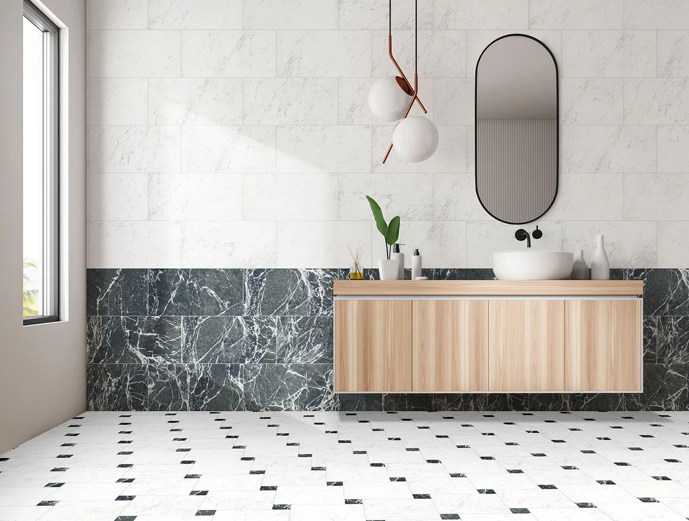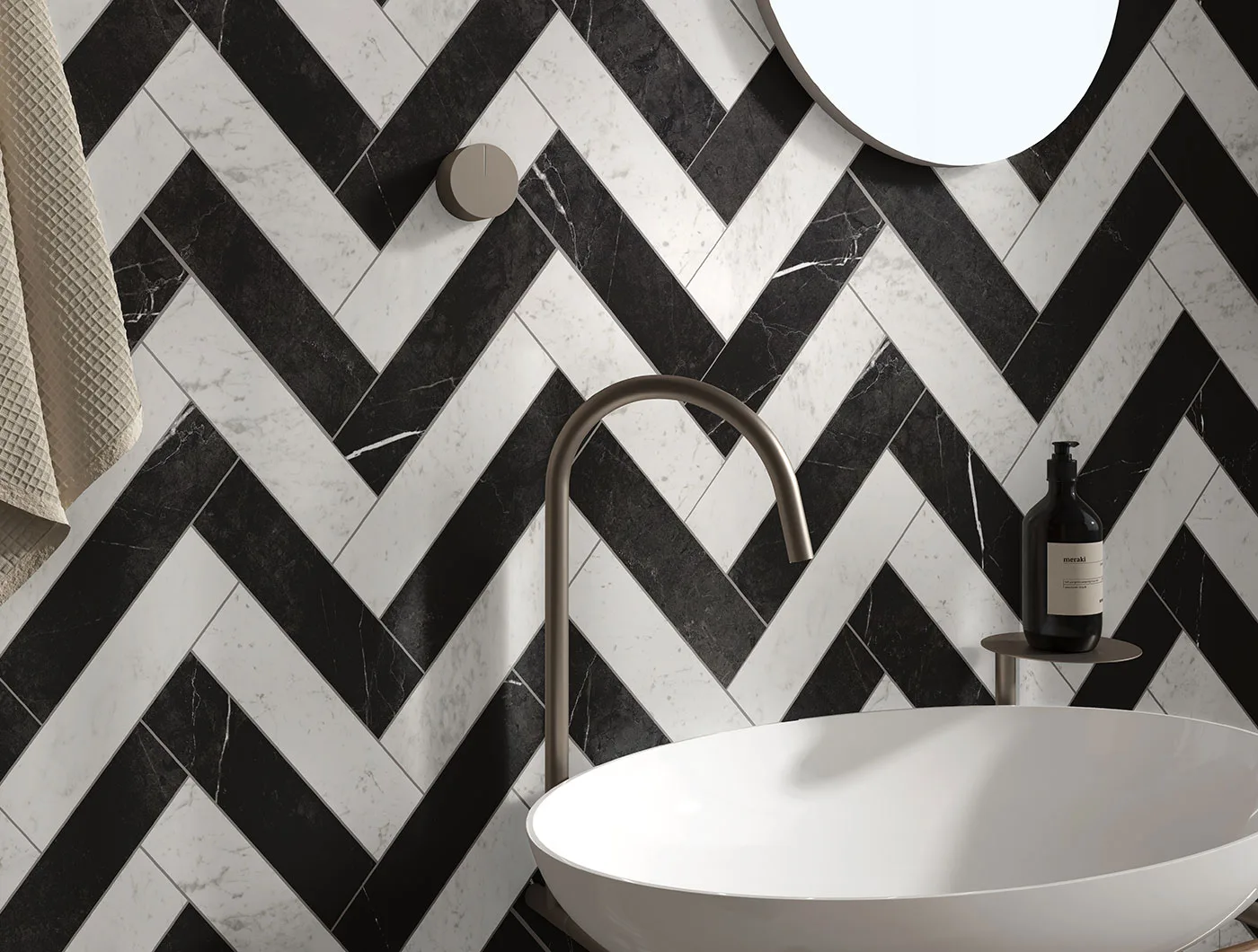 - Marmur Carrara i Bianco di Asiago To synonim klasycznej elegancji. Delikatne, białe płytki z subtelnymi, szarymi żyłkami przywodzą na myśl monumentalne dzieła sztuki, takie jak rzeźby Michała Anioła. Pochodzący z Alp Apuańskich marmur Carrara oraz wydobywany w Przedalpejskim regionie Włoch Bianco di Asiago nadają wnętrzom lekkość i ponadczasową estetykę.