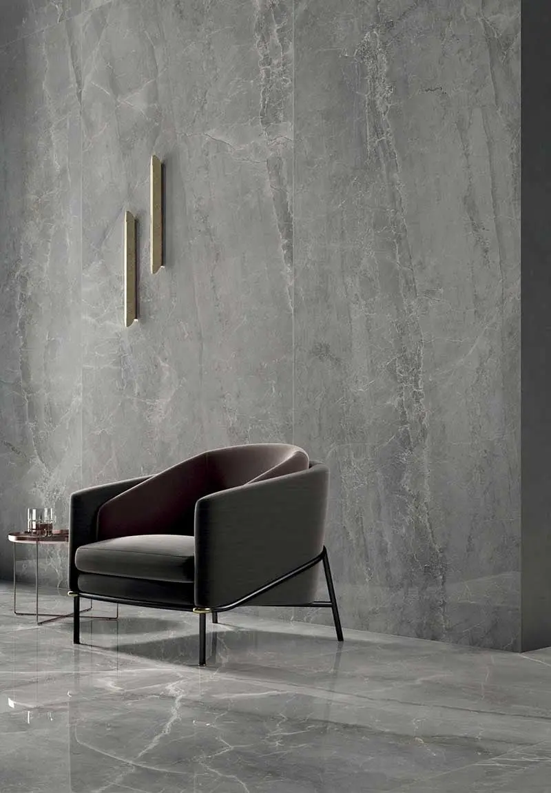 Synestesia to kolekcja okładzin podłogowych i ściennych, które pobudzają wzrok i dotyk. To podróż do materii przez zmysły, nakładają się i łączą, aby zobaczyć miękkość powierzchni i dotknąć intensywności żył, które ją przecinają.