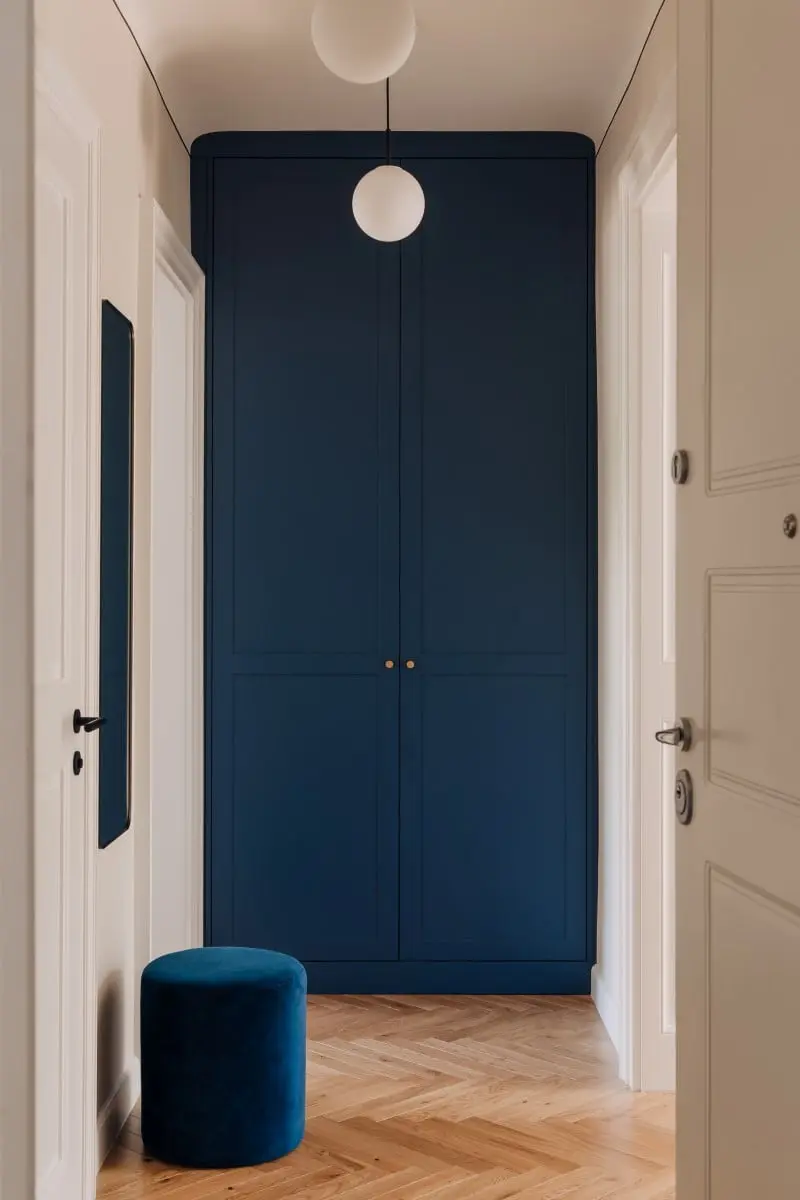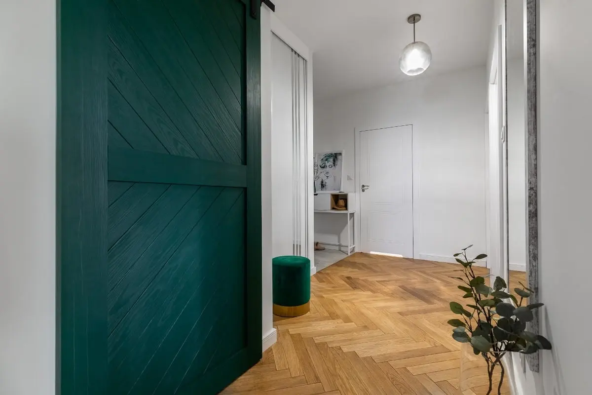 Mocny akcent barwny świetnie sprawdzi się w przedpokoju. Nawet jeśli pozostałe pomieszczenia są w subtelnej, jednorodnej kolorystyce, to właśnie w holu można postawić na odważny kolor, który w innych częściach mieszkania pojawi się jedynie w detalach.
