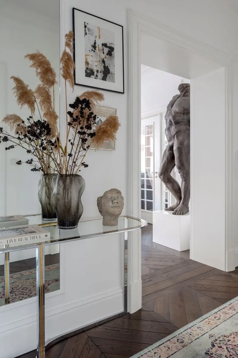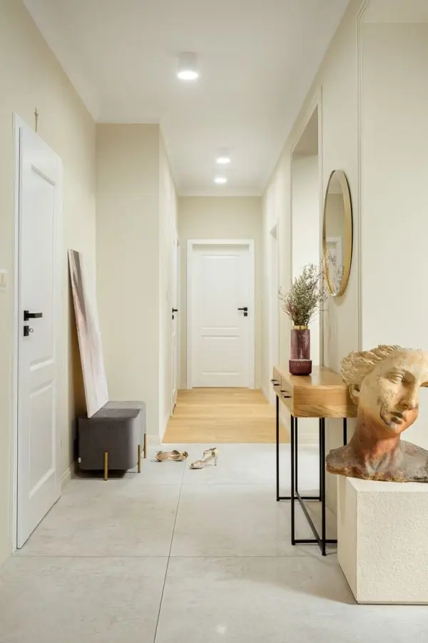 Podczas projektowania zachwycającej strefy wejścia, należy o niej myśleć z równym pietyzmem, jak o pozostałych pomieszczeniach. Korytarz może nadać ton reszcie mieszkania, odzwierciedlając styl i paletę kolorów reprezentacyjnych pokojów. Jeśli w aranżacji wnętrza znalazła się sztukateria, jej powtórzenie w holu będzie subtelną klamrą kompozycyjną. Należy pamiętać również o dobrym doświetleniu przedpokoju, by dodatkowo podkreślić jego rangę.