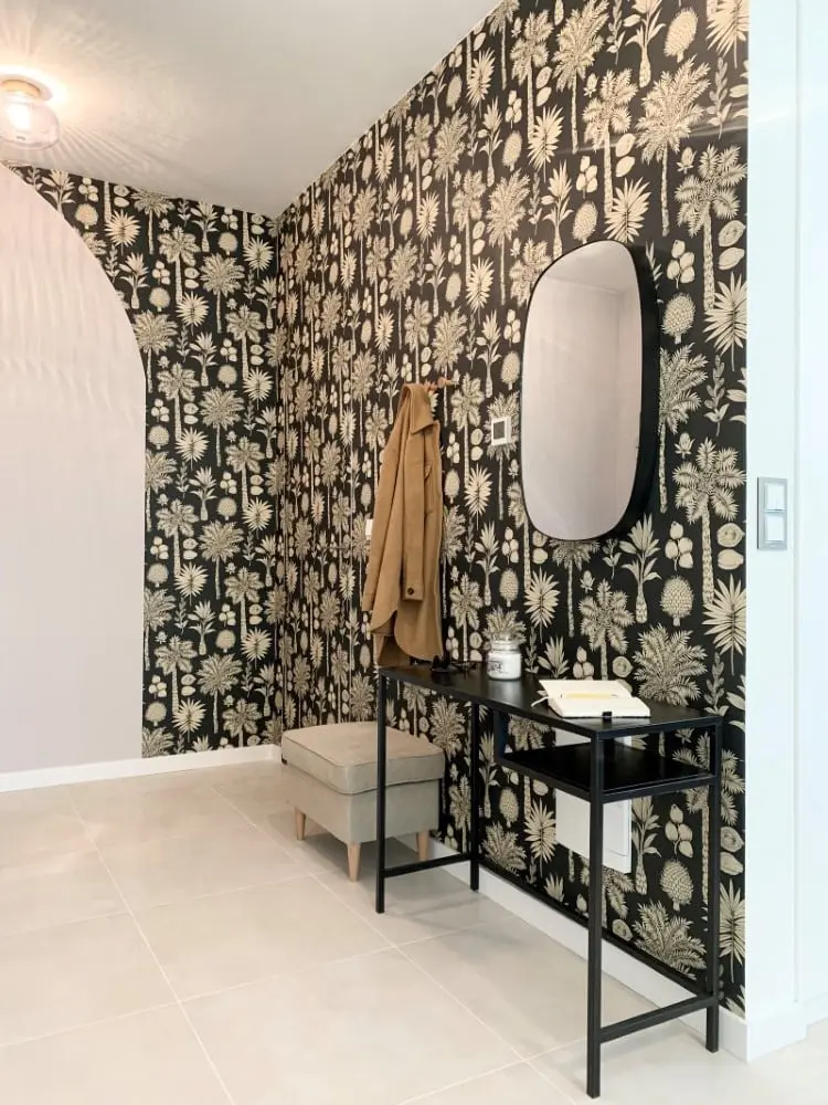 Tapeta w strefie wejścia to pomysł na wprowadzenie do holu interesującej dekoracji. Wzorzyste ściany nadadzą przestrzeni charakteru, jednocześnie nie wprowadzając bałaganu w warstwie wizualnej.