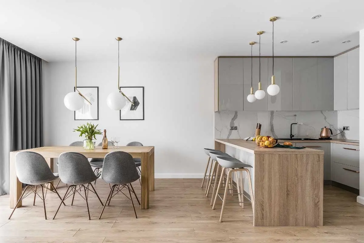 Ostatnią rzeczą, na jaką powinniśmy zwrócić uwagę, to rozmieszczenie oświetlenia. Nie wystarczy jeden główny punkt światła – powinniśmy oświetlić każdą strefę. Przykładem niech stanie się sytuacja z życia wzięta – mamy kuchnię połączoną z jadalnią i salonem. Obie strefy oddziela wyspa. Oświetlić powinniśmy blat, centrum kuchni, wyspę, a także lampa powinna znaleźć się również nad stołem oraz w strefie wypoczynkowej – to niezbędne minimum!