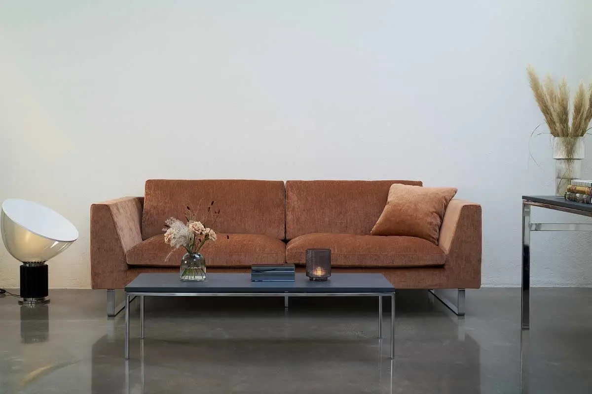 Minimalistyczne projekty, w których dominuje ograniczona paleta barw – najczęściej biel, czerń i szarość, zyskuje pożądany faktor przytulności kiedy pojawi się w nich ruda sofa. Mebel wypoczynkowy w tej tapicerce, szybko odmieni wnętrza w stylu scandi, których popularność jest dawno za nami.