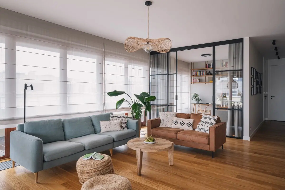 Ciepłe barwy na stałe wpisały się we współczesne aranżacje wnętrz. Ich popularność zaczęła się od kolorów ziemi, następnie zachwyciła nas terakota, której licznie odcienie oscylują między pomarańczem, ceglaną czerwienią, brązem, a nawet różem. Przypieczętowaniem tych trendów, zdaje się być wprowadzanie ciepłych tonacji do wnętrz, pod postacią tapicerek meblowych, które do tej pory były dość zachowawcze. W te tendencje wpisuje się ruda sofa, będąca coraz częściej punktem fokusowym salonów i części dziennych. Architekci traktują ją jako uzupełnienie projektów o bardzo różnym stylu – od eklektyczny, przez boho po nawet minimalistyczne. Przyjrzyjmy się najciekawszym propozycjom architektów na salon z rudą sofą.