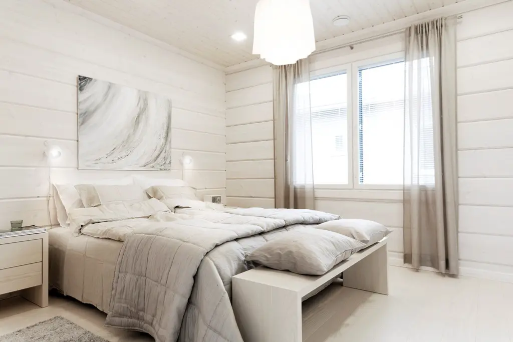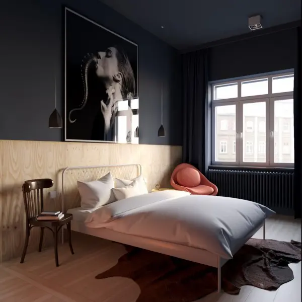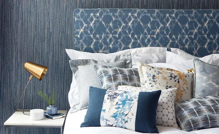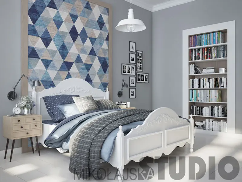 A skoro wcześniej była mowa o miękkich fakturach materiału wykorzystywanego do aranżacji sypialni, to pamiętajcie, że dawnym sposobem również na ścianie mogą się takowe znaleźć. Szukając równowagi zawsze ubrać je możemy we wzory, które charakteryzuje kąt prosty i ostry – kwadraty, romby, trójkąty.